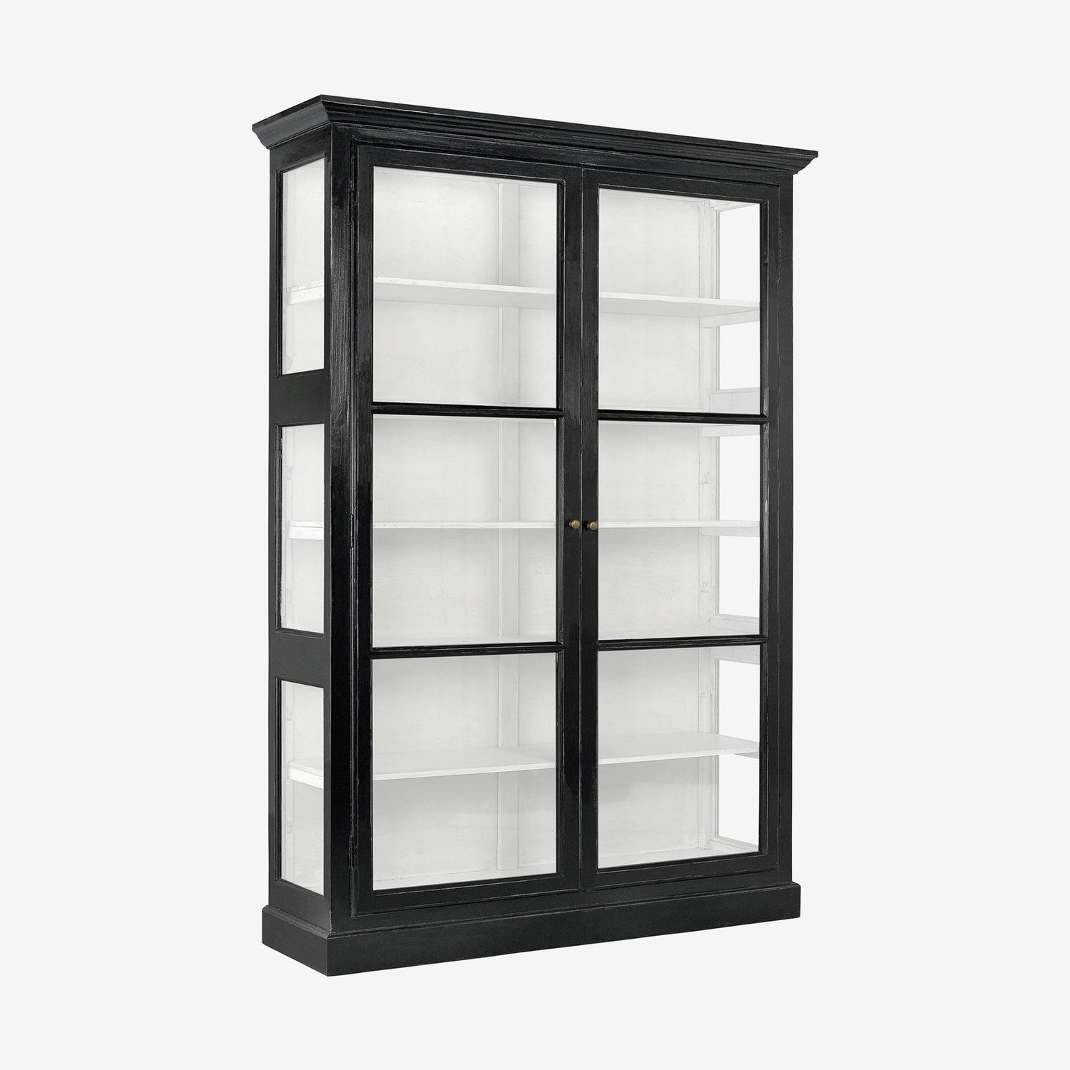 Klassisk vitrineskap i tre, 212x142 cm, farge svart/hvit.
