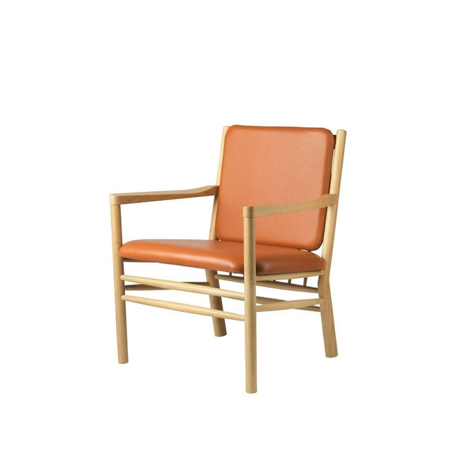 Erik Ole Jørgensen,J147 - Lenestol, Eik, Natur, Lakkert, Lær, Semianilin, Kognac.