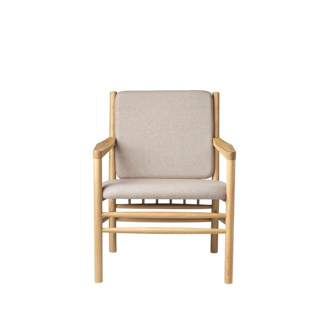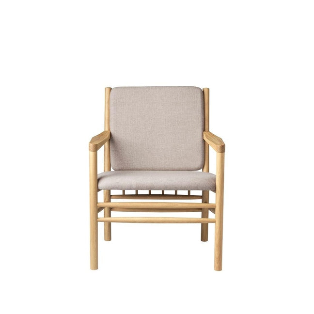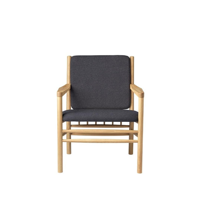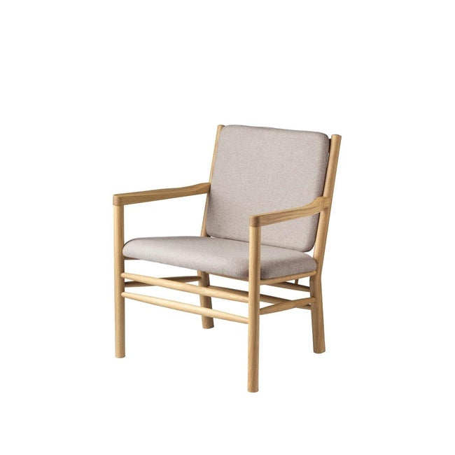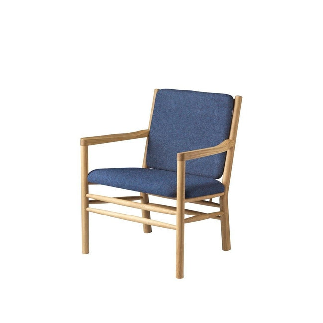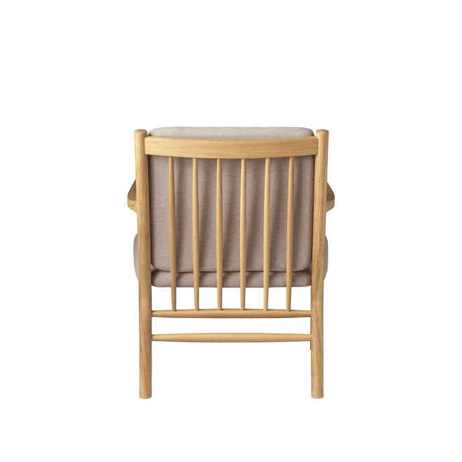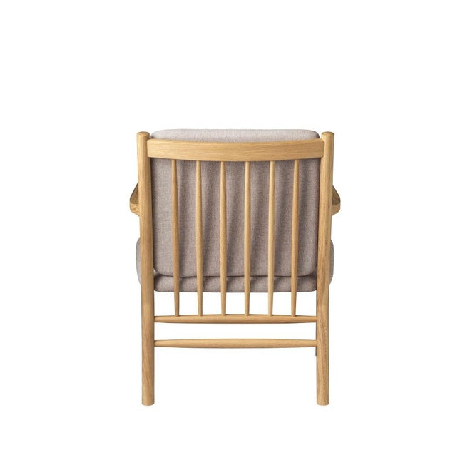 J147 loungestolen er en del av Erik Ole Jørgensens berømte møbelserie fra 1978, men skiller seg ut med sine enkle armlener uten spiler. Denne lenestolen er designet med fokus på komfort og innbyr til avslapning, enten du vil lese en bok eller bare nyte et stille øyeblikk.