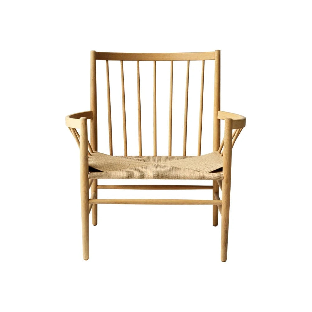 Denne loungestolen er laget av kvalitetsmaterialer, fra det fine fletverket til det solide, massive treverket, som sikrer både komfort og holdbarhet. J82 er designet for å være behagelig å sitte i over lengre tid, og er derfor ideell som en frittstående stol i stuen, på kontoret eller i et avslapningsområde.