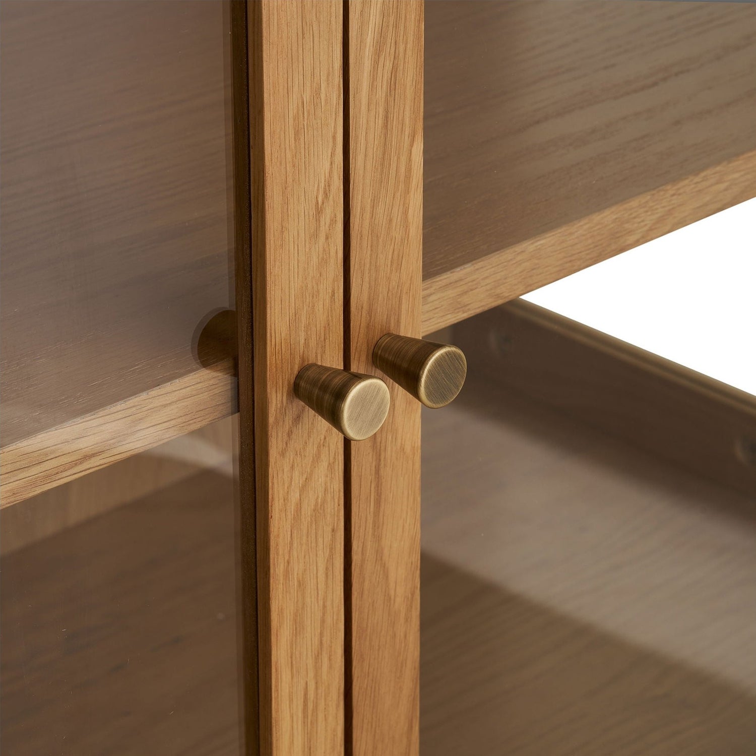 Zamora skjenk er et elegant sideboard med fire glassdører og et praktisk hyllesystem. Den er laget av eik og eikefiner, kombinert med herdet glass, noe som gir en solid og stilren oppbevaringsløsning. Dette møbelet er perfekt for å organisere stuen eller gangen, samtidig som det tilfører en moderne touch til interiøret. Leverandør: House Nordic