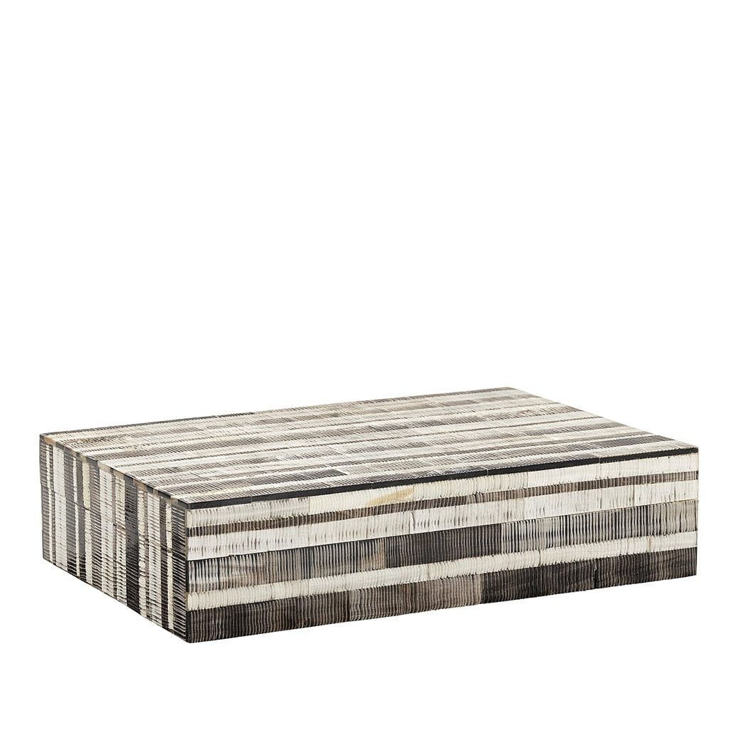 Oppbevaringsboks laget av horn og MDF, hver boks er unik. Denne stilige boksen kombinerer funksjonalitet og estetikk, perfekt for oppbevaring av verdisaker eller som en dekorativ detalj i hjemmet. Med sin unike design og naturlige materialer er den et tidløst tilskudd til ethvert hjem.