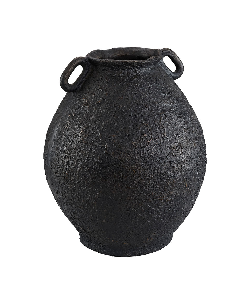 Oppdag vår stilige metallurne med en unik strukturert overflate. Den er vakkert utformet med praktiske håndtak, perfekt for dekorasjon uten vann. Ideell for å tilføre et elegant preg til ethvert rom. Gjør din innredning komplett med denne tidløse vasen!