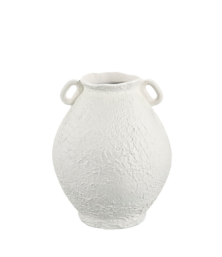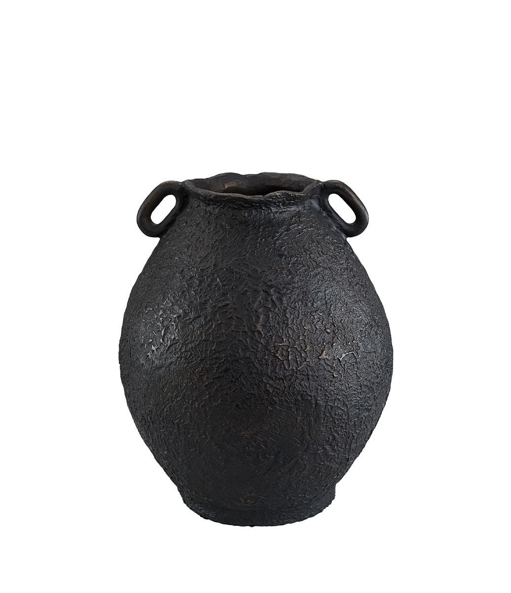 Oppdag vår elegante metallurne med strukturert overflate, designet med håndtak for enkel håndtering. Perfekt som en dekorativ vase, men husk at den ikke er vanntett. Ideell for tørre blomsterarrangementer og som et stilfullt innslag i ethvert rom. En tidløs detalj for ditt hjem!
