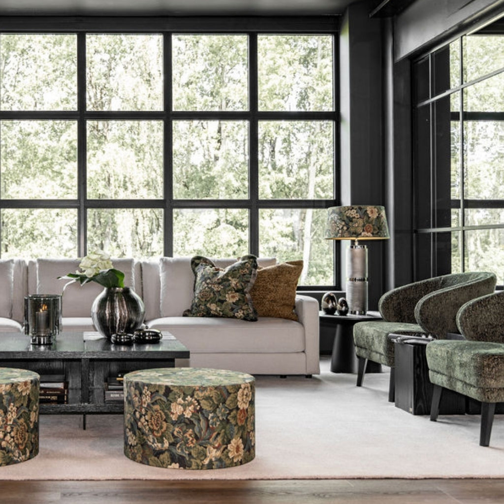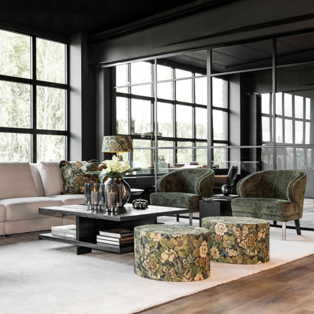 Oppdag vår eksklusive lenestol som kombinerer moderne design med kunstnerisk tekstil. Den unike mønsterklæringen gir karakter, mens den enkle innsiden skaper balanse. Med omsluttende form og myk polstring tilbyr den høy komfort. Perfekt for både sosiale områder og stille hjørner i hjemmet. En ideell detalj for ethvert rom.