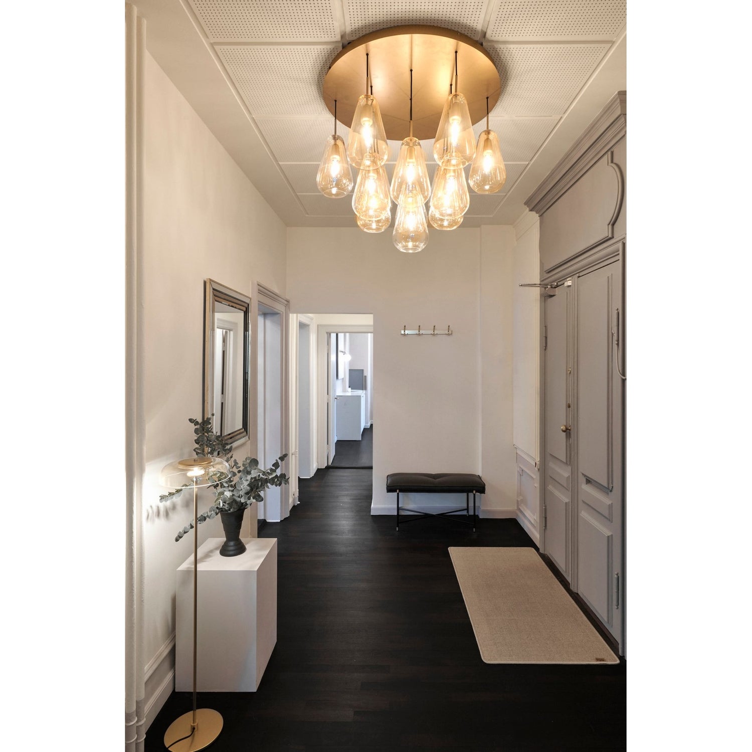 Anoli-lampene er laget med inspirasjon fra den nordiske naturen. Anoli 13-lampen består av 13 dråpeformede pendler, og de elegante munnblåste glasskjermene symboliserer stille regndråper på en høstdag. Den naturlige tåreformede formen skaper ro og balanse i interiøret, og lampen passer over et rundt spisebord eller i hjørnet av en stue.