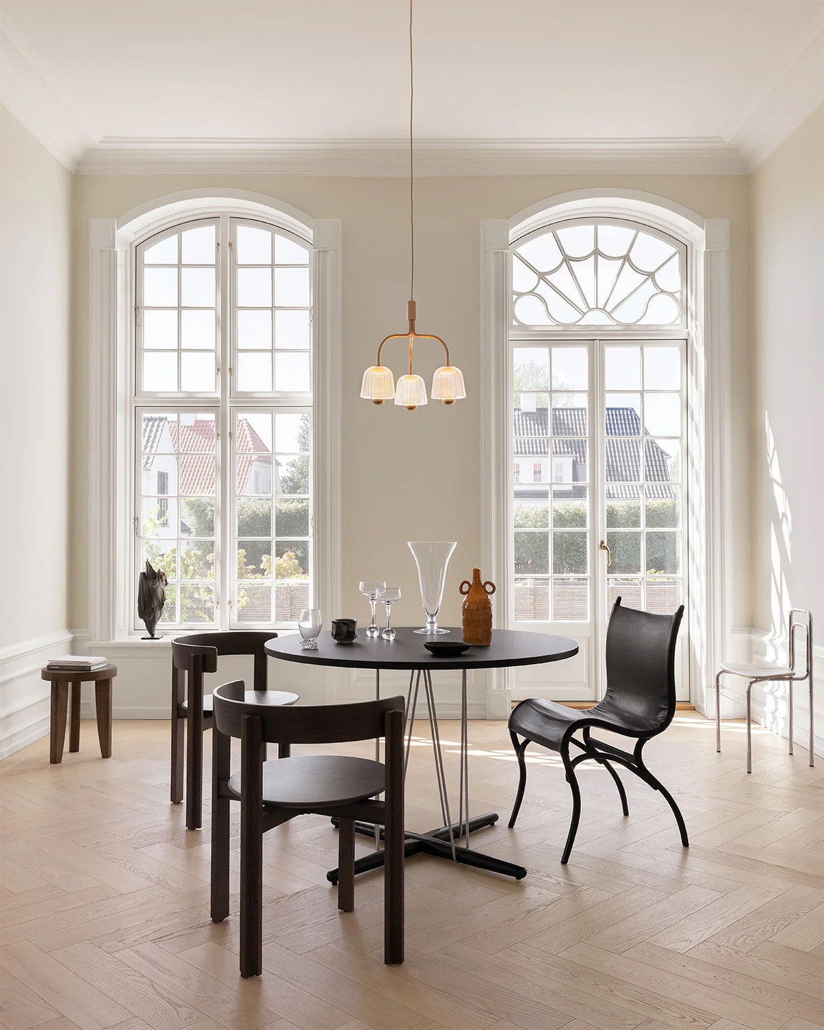Denne stilrene pendellampen forener moderne estetikk med tidløse materialer. Rammen i satengmessing gir et eksklusivt og elegant uttrykk, mens den rillede, klare glasskjermen sprer lyset på en myk og dekorativ måte. Lampen er utstyrt med en utskiftbar LED-lyspæreholder, noe som gjør det enkelt å tilpasse lysstyrken og forlenge lampens levetid. Den gullfargede kabelen tilfører en raffinert detalj som kompletterer lampens helhetlige design.