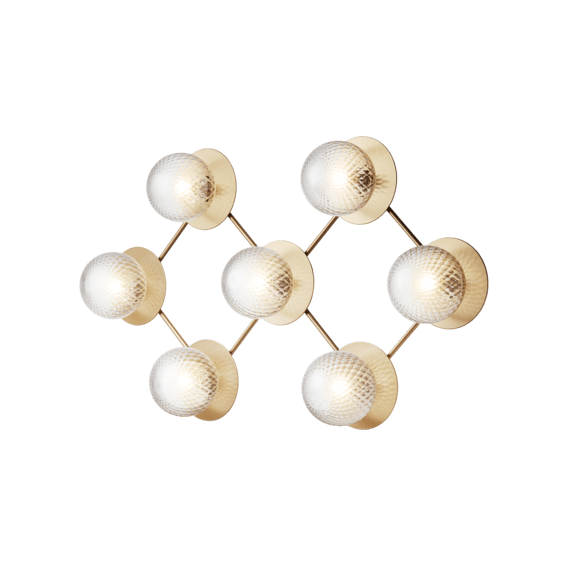 Liila 7 er en sofistikert veggkrone med en langstrakt modulær formasjon. Liila 7 kan installeres vertikalt eller horisontalt, og lys skulpturen er like dekorativ når lampen er slått av.