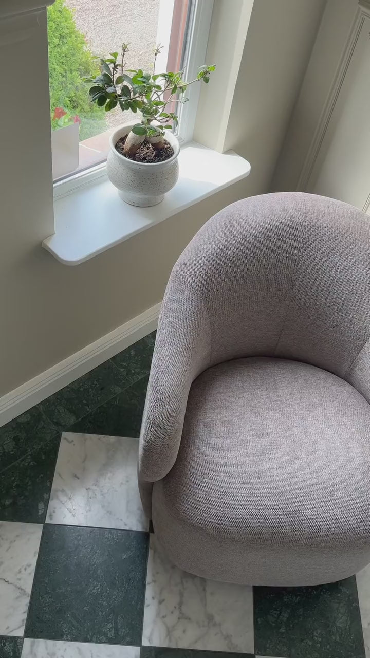Chapeltown lenestol i beige stoff er en polstret stol med myke, innbydende former, dekorative sømmer og komfortable armlener som gir ekstra støtte. Den er designet for å gi en omsluttende og behagelig sitteopplevelse, perfekt for lange øyeblikk med avslapning. Med sin svingfunksjon er Chapeltown like vakker fra alle vinkler, og den blir raskt et naturlig blikkfang i rommet.