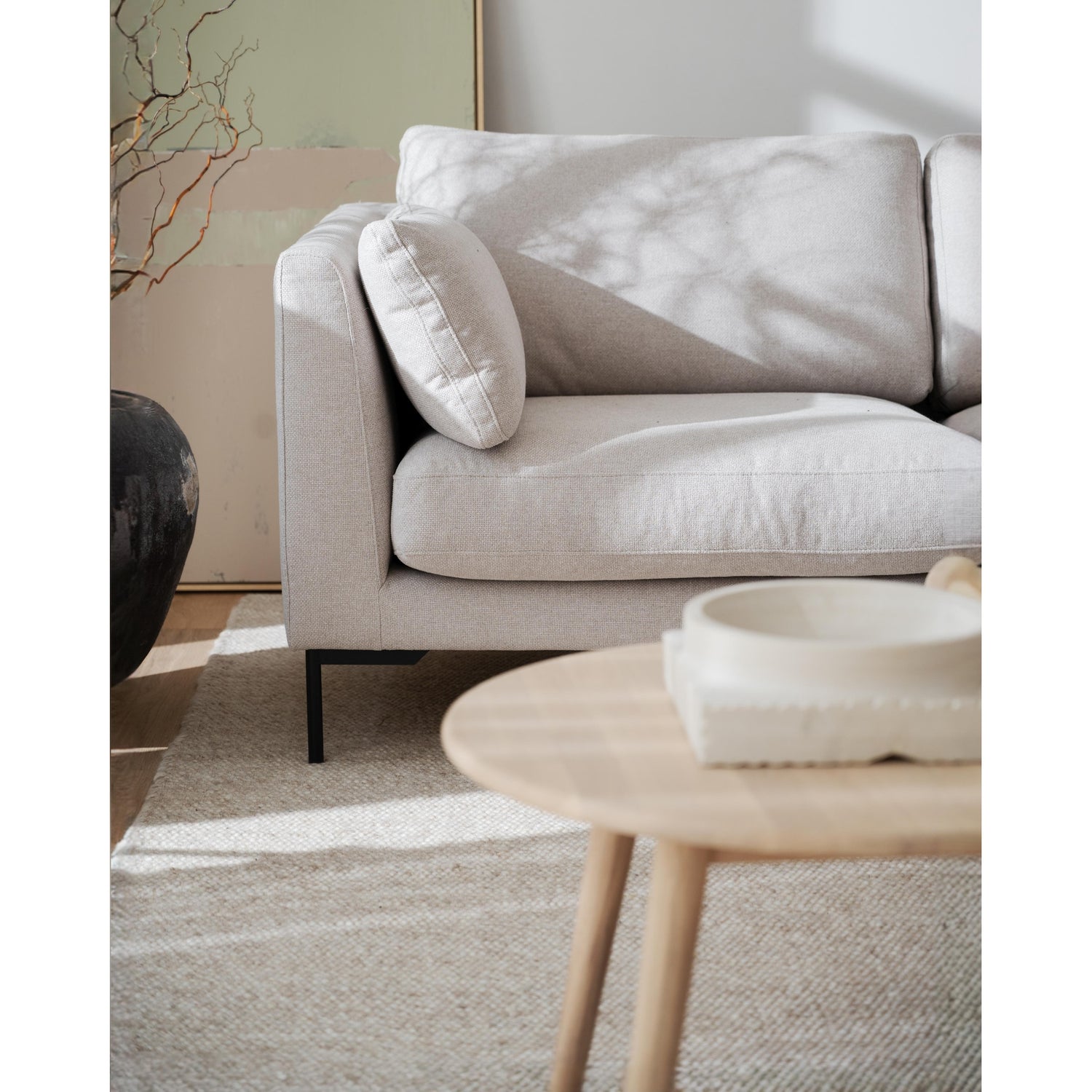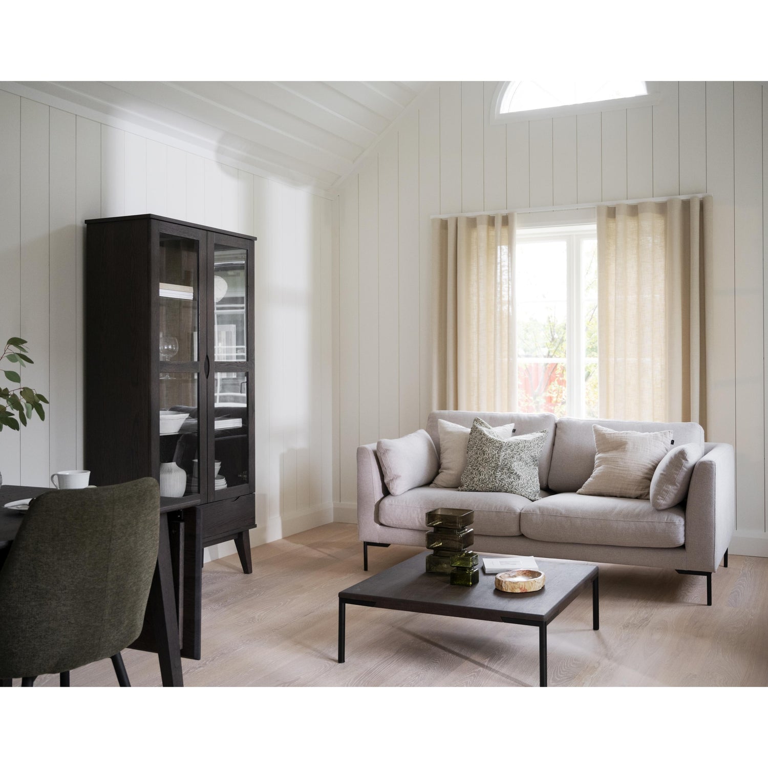 Oppdag Corwin 2,5-seter sofaen, en perfekt kombinasjon av stil og komfort for ditt hjem. Denne sofaen har et klassisk, rett design som gir et elegant preg til ethvert rom. Med løse ryggputer kan du enkelt tilpasse sitteopplevelsen etter dine preferanser. Corwin sofaen er utstyrt med buede ben i svart metall, som gir et moderne og eksklusivt uttrykk.