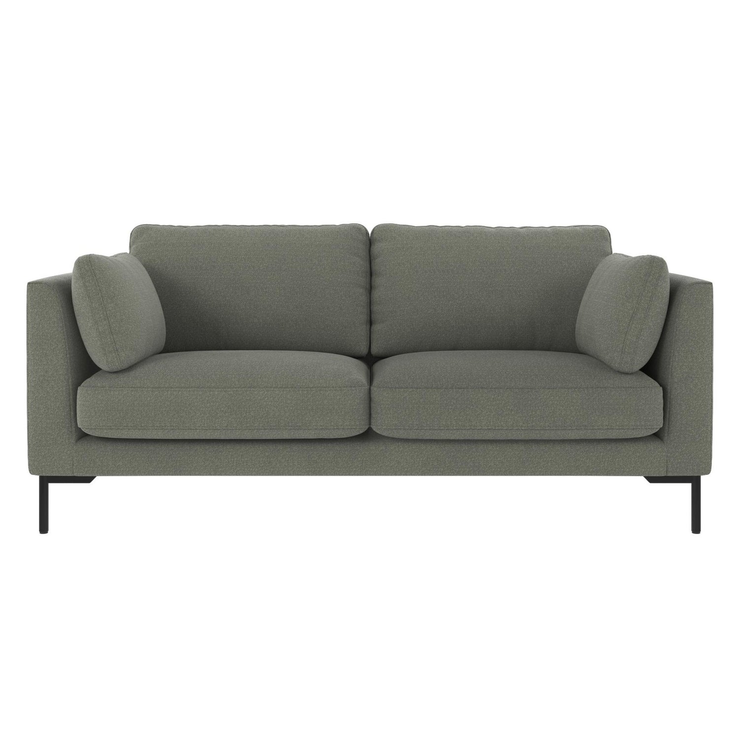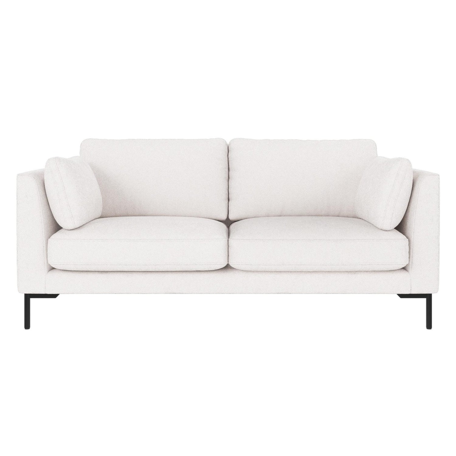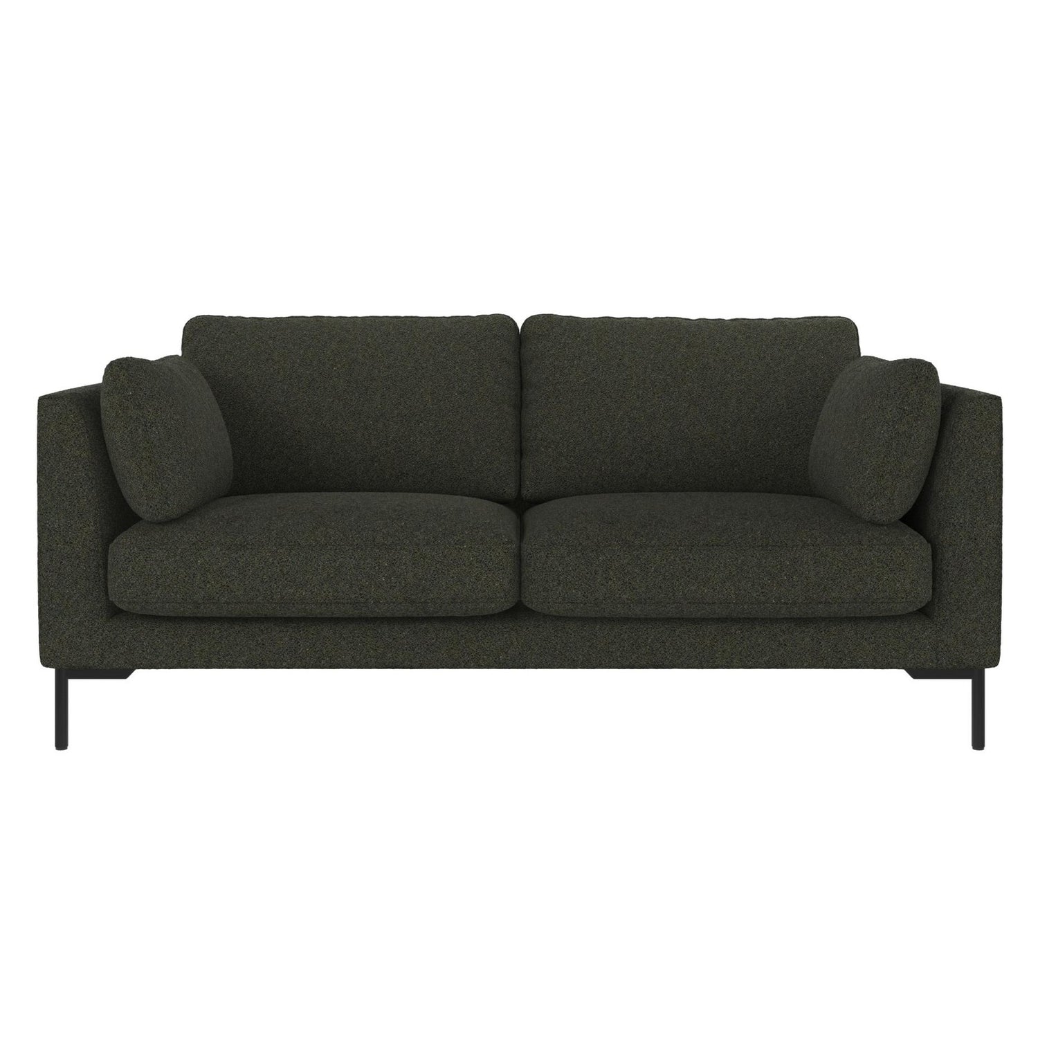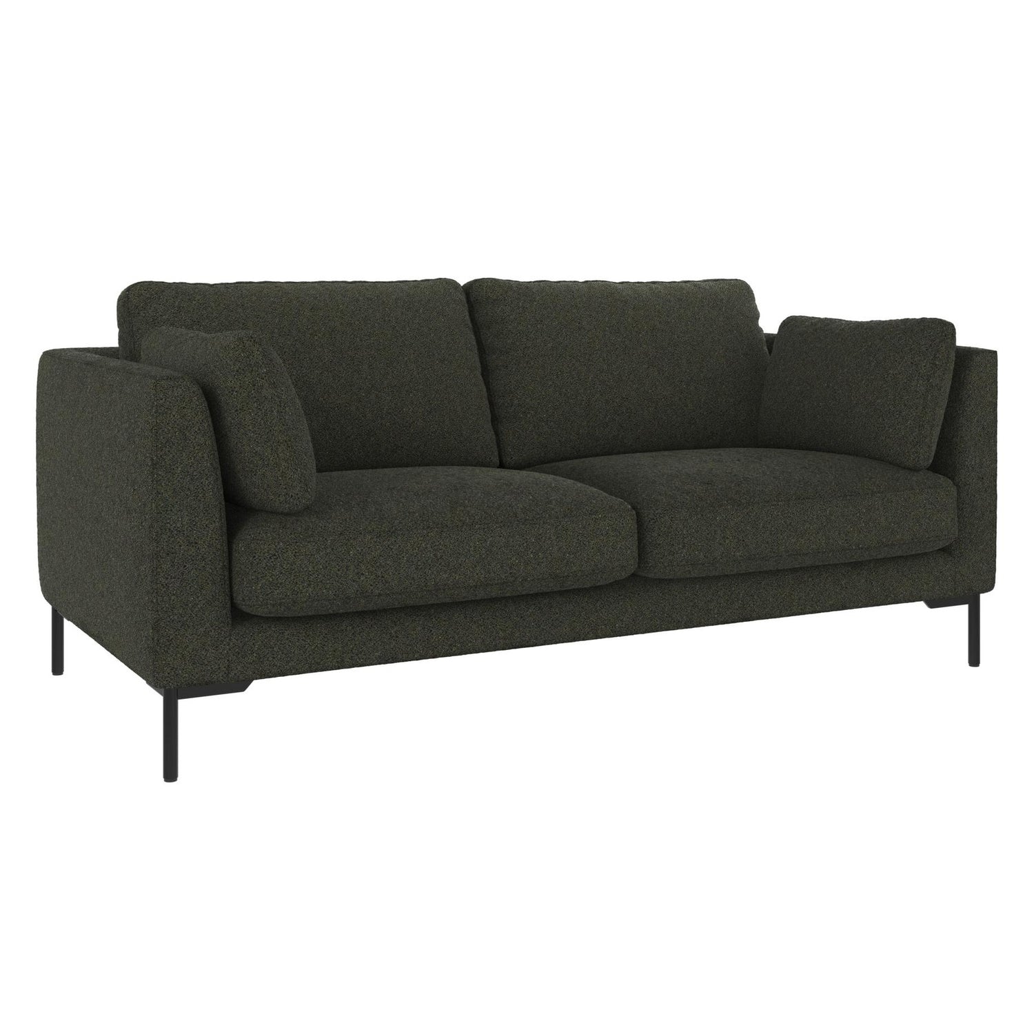 Materiale: Ramme i solid tre, kryssfiner og sponplater, nozag-fjærer i setet. Rammen er polstret med polyeter-skum og syntetisk vatt. Sitteputer i hard elastisitetsskum med syntetisk vatt og stoff. Ryggputer i revet skum blandet med polyesterfiberkuler, med syntetisk vatt og stoff. Ben i metall pulverlakkert svart, høyde 16 cm.