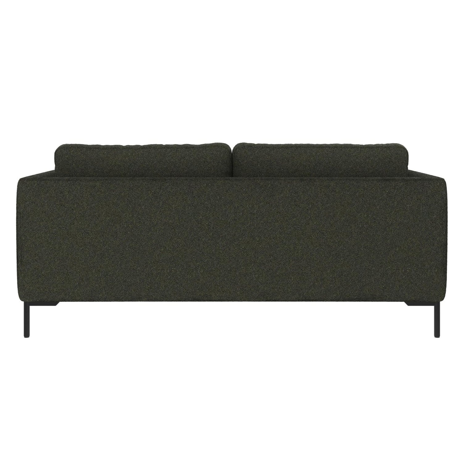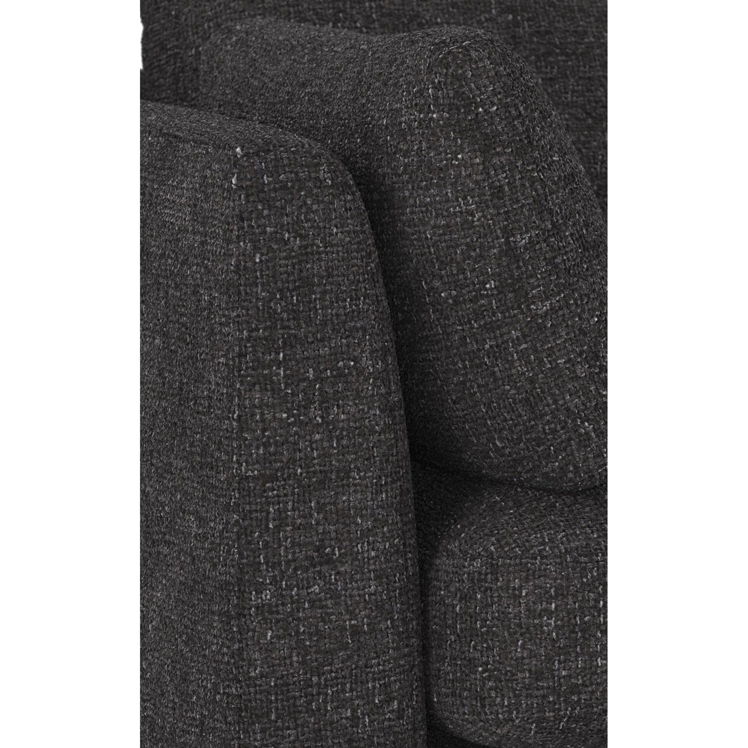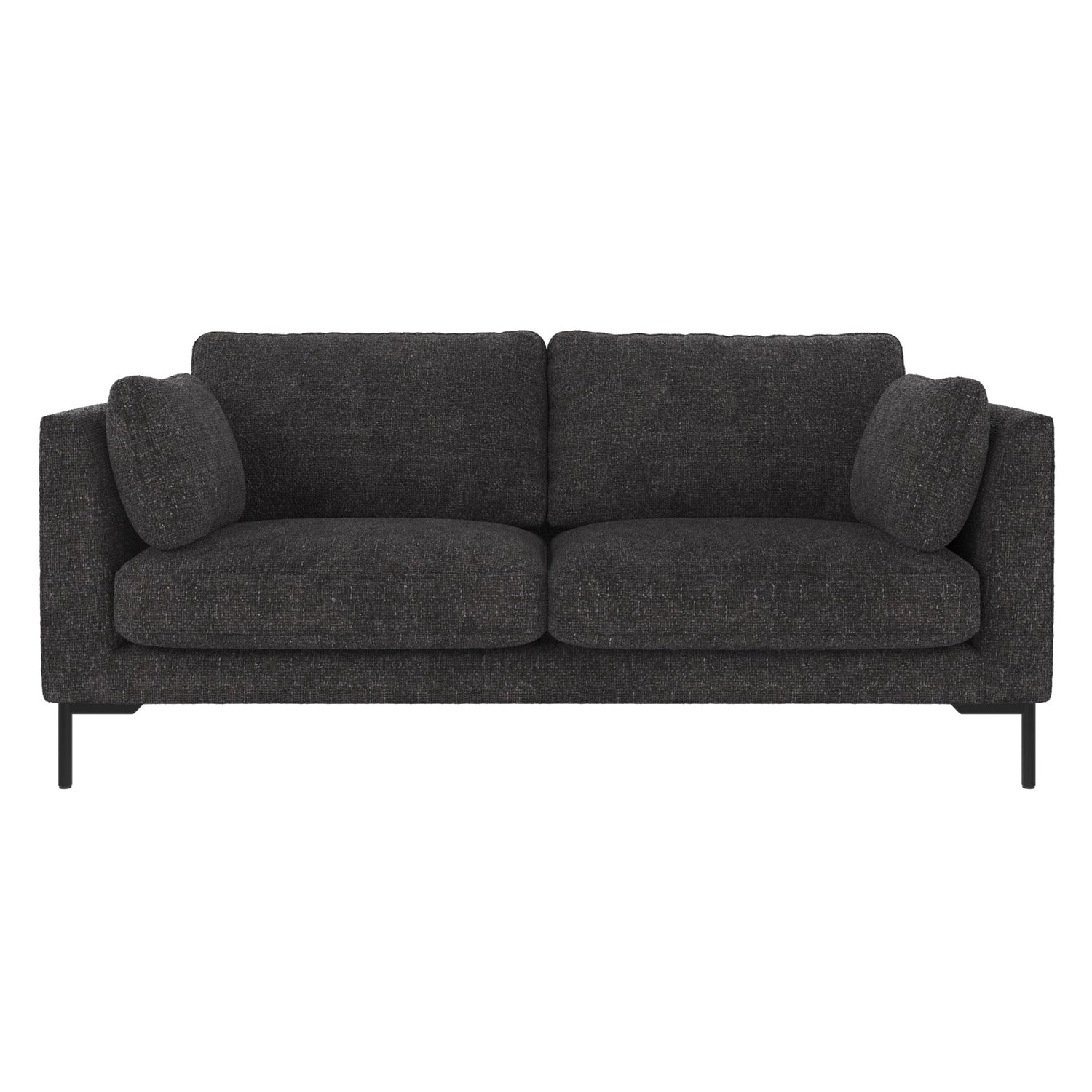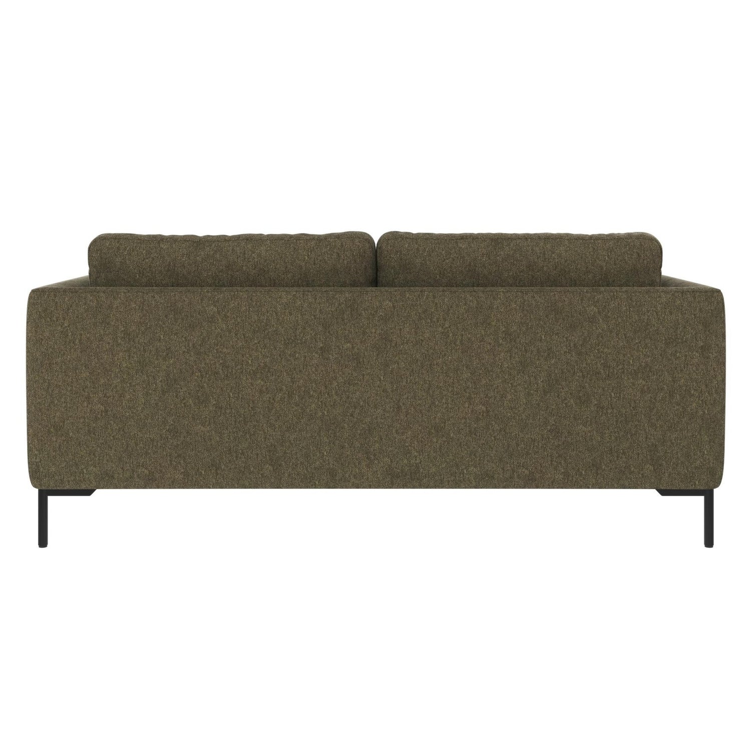 Materiale: Ramme i solid tre, kryssfiner og sponplater, nozag-fjærer i setet. Rammen er polstret med polyeter-skum og syntetisk vatt. Sitteputer i hard elastisitetsskum med syntetisk vatt og stoff. Ryggputer i revet skum blandet med polyesterfiberkuler, med syntetisk vatt og stoff. Ben i metall pulverlakkert svart, høyde 16 cm.