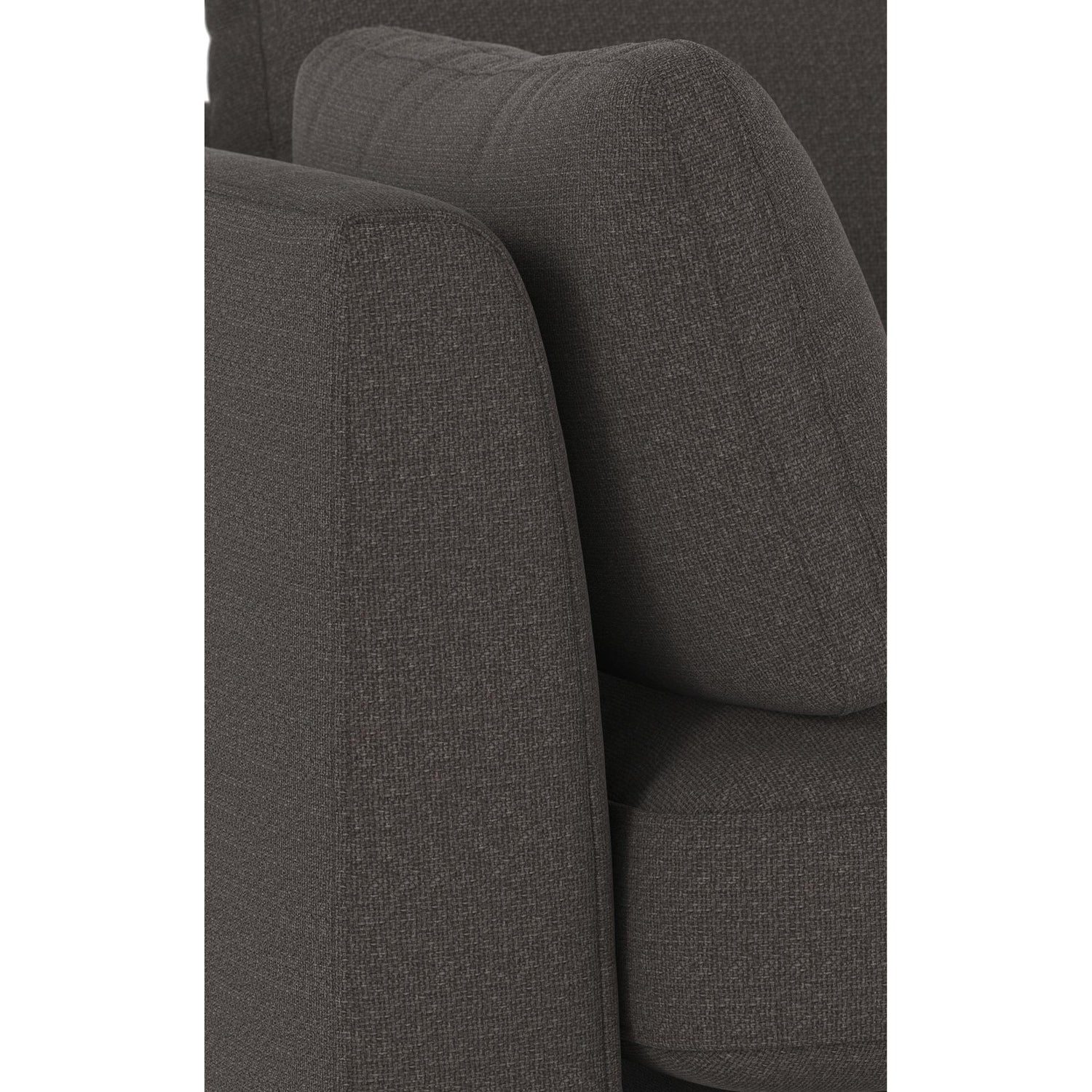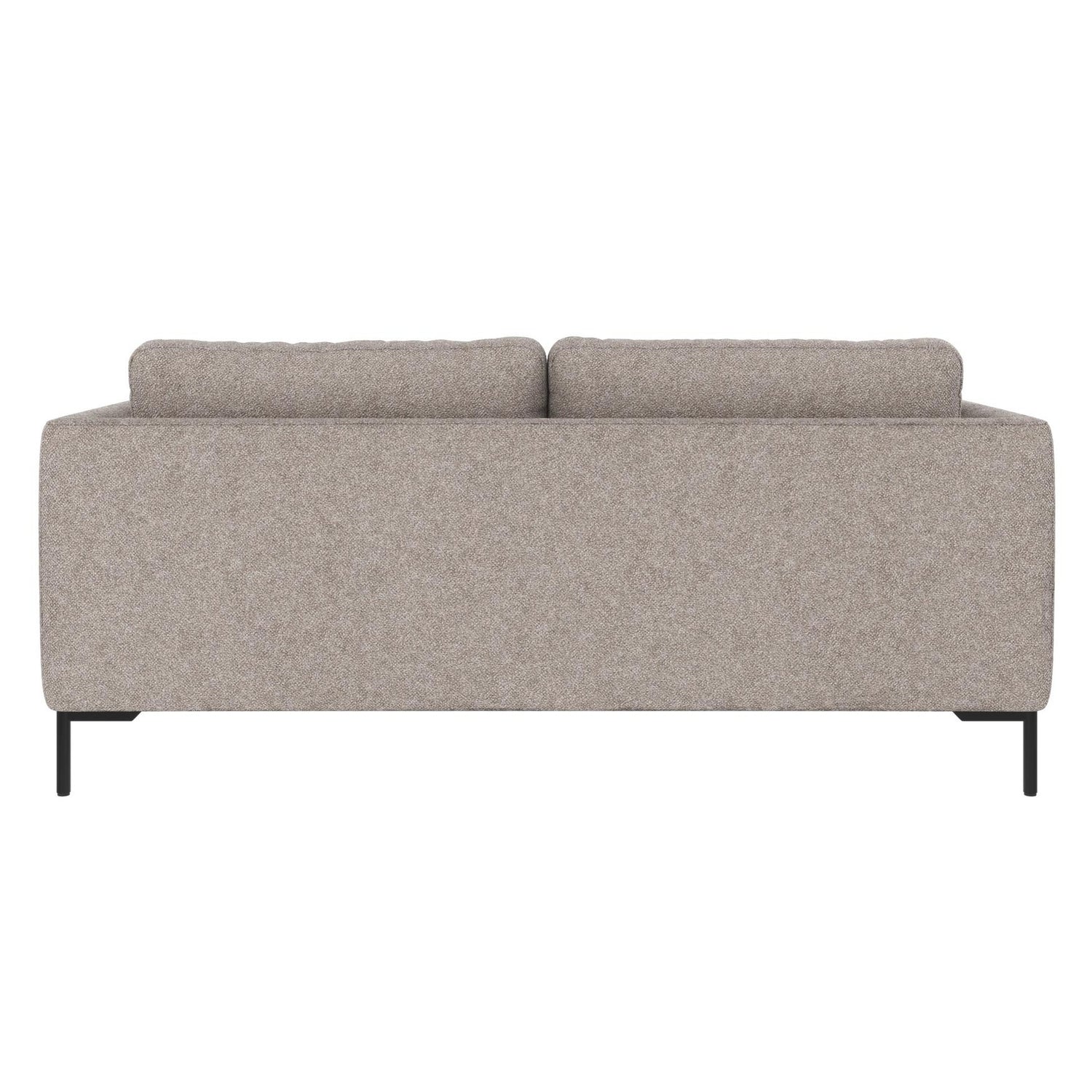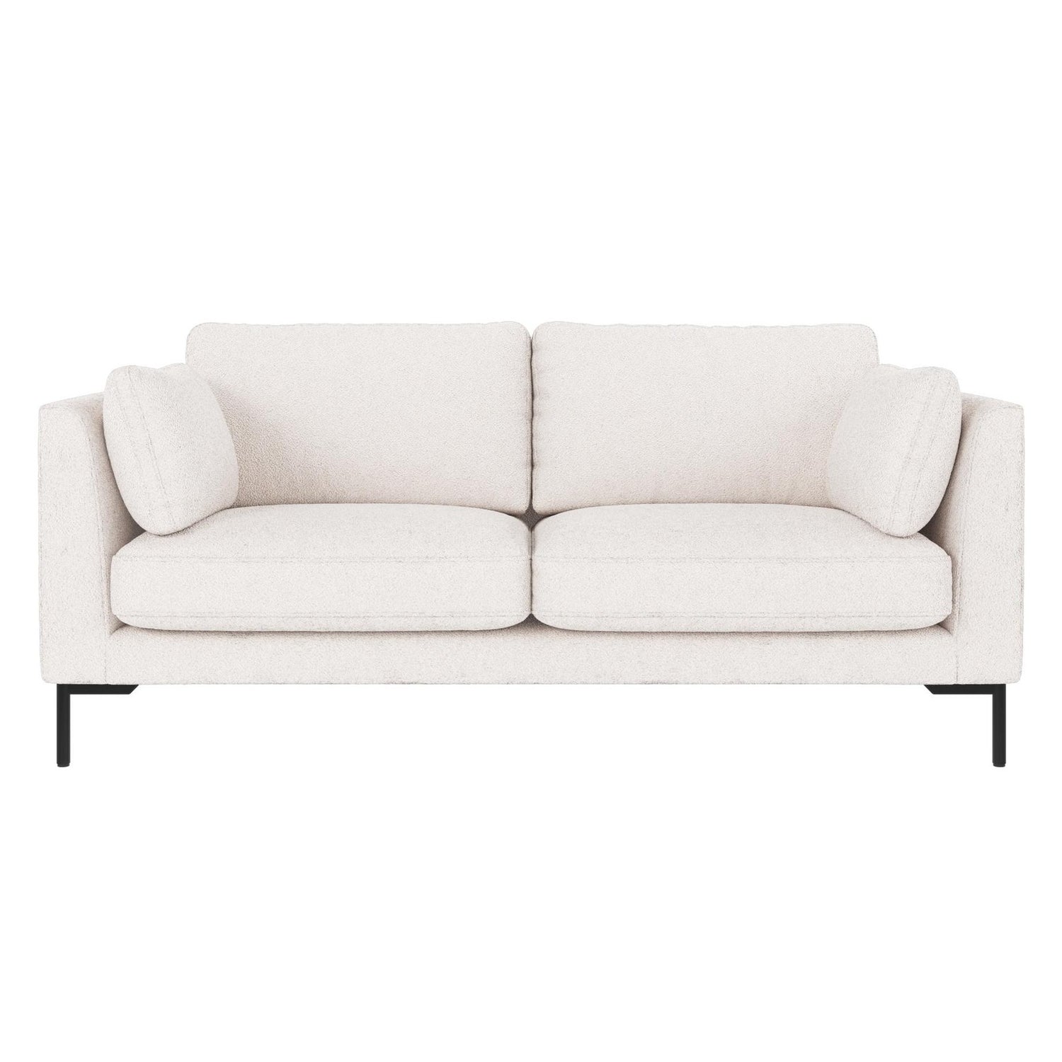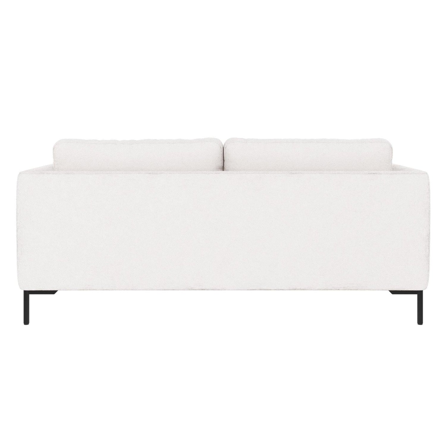 Materiale: Ramme i solid tre, kryssfiner og sponplater, nozag-fjærer i setet. Rammen er polstret med polyeter-skum og syntetisk vatt. Sitteputer i hard elastisitetsskum med syntetisk vatt og stoff. Ryggputer i revet skum blandet med polyesterfiberkuler, med syntetisk vatt og stoff. Ben i metall pulverlakkert svart, høyde 16 cm.