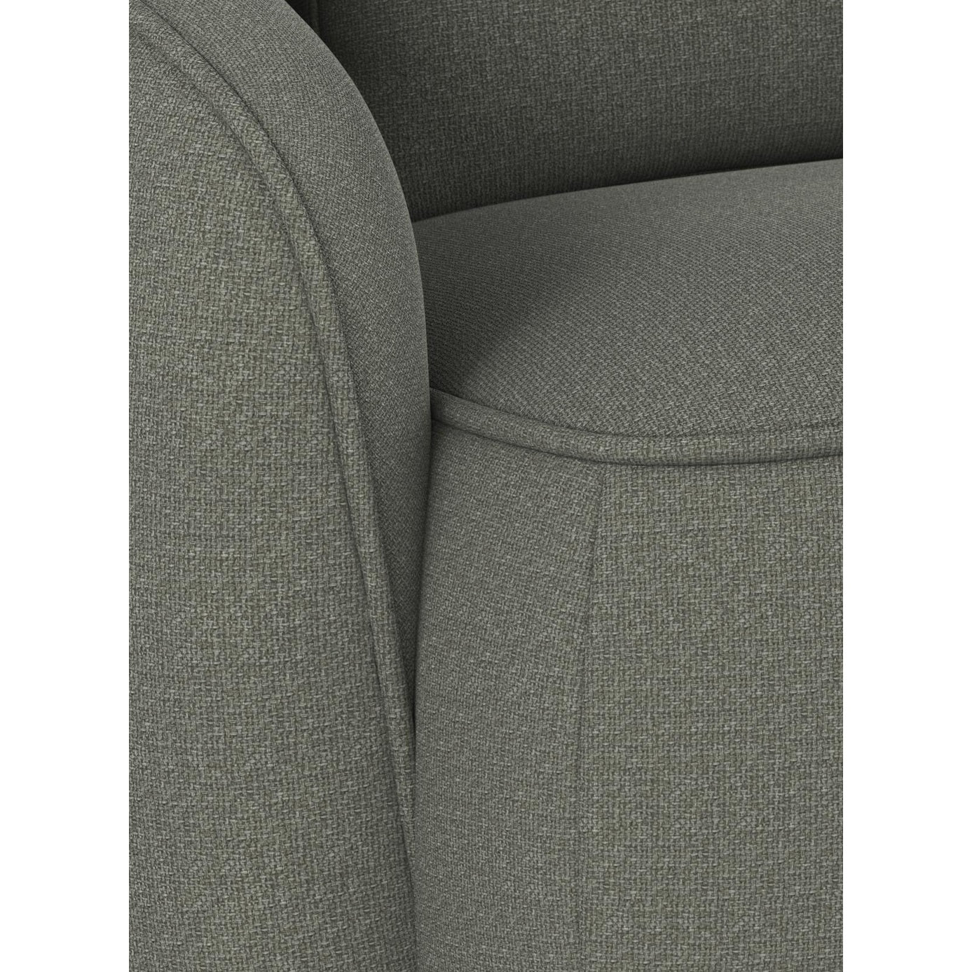 Materiale: Ramme i kryssfiner og sponplater, sete i zig-zag fjærer (Nozag). Ramme polstret med polyeter skum, syntetisk vatt og stoff. Sete og ryggstøtte i høyelastisk skum (kalde skum), syntetisk vatt og stoff. Føtter i svart plast H 50mm.