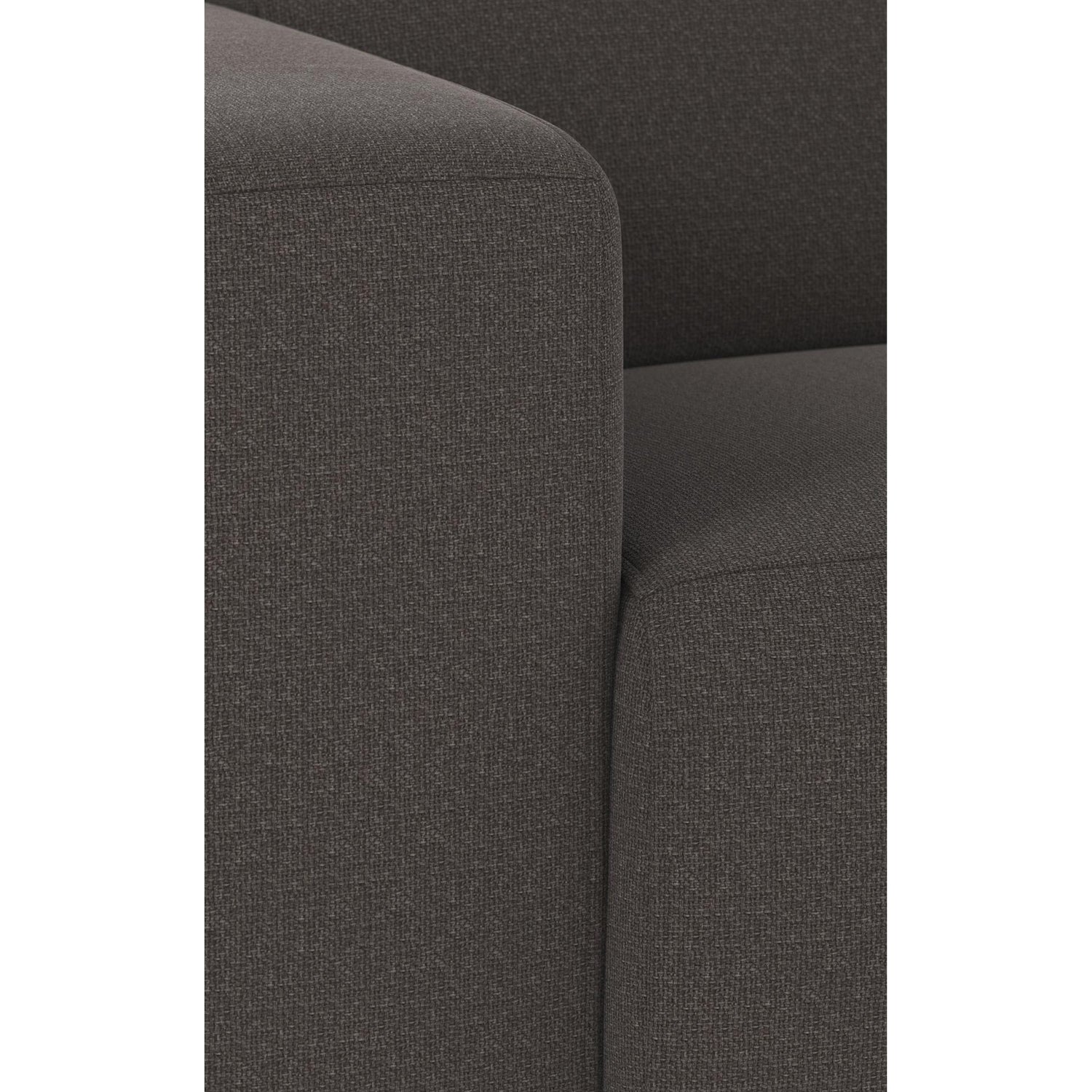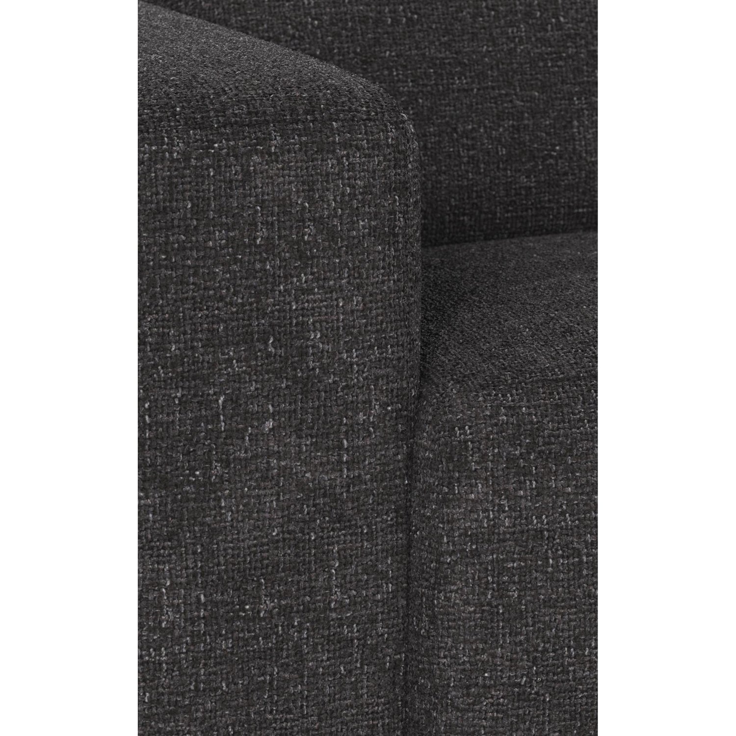 Materiale: Ramme i kryssfiner og sponplater, sete i zig-zag fjærer (Nozag). Ramme polstret med polyeter skum, syntetisk vatt og stoff. Sete og ryggstøtte i høyelastisk skum (kaldt skum), syntetisk vatt og stoff. Føtter i svart plast H 60mm.