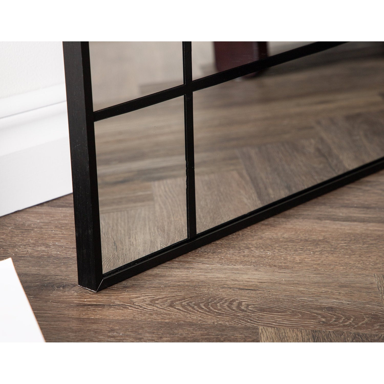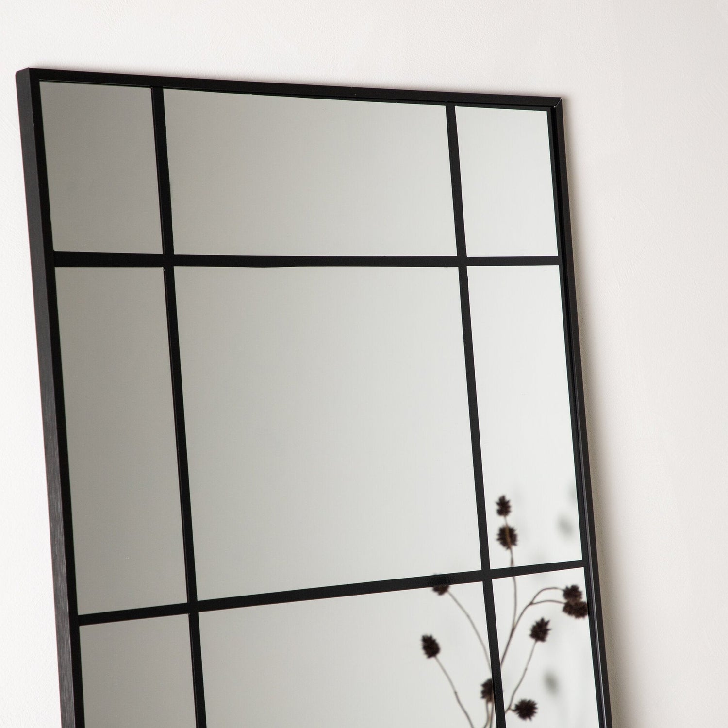 Speilet tilhører Lake-serien og har et industrielt design med en tynn ramme og rutenettmønster.