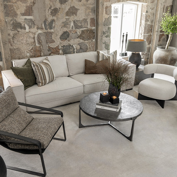 Predore sofabord i aluminium er et unikt og elegant tillegg til hjemmet ditt. Hvert bord er nøye laget, og de naturlige variasjonene i overflaten gjør hvert bord helt unikt. Den lette, men robuste konstruksjonen sikrer holdbarhet og praktisk bruk, mens den glatte finishen gir et moderne preg.
