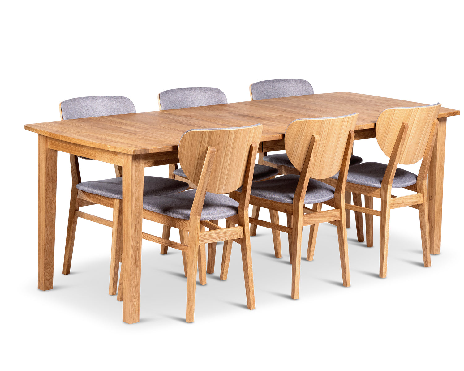 Visby 160/210 spisebord er et ovalt bord med buede kanter i massiv oljebehandlet eik. Den medfølgende innleggsplaten(50cm) gjør det enkelt å forlenge bordet til 210 cm, slik at du får god plass til familie og gjester. Den varme eikefinishen gir et naturlig og stilrent uttrykk som passer perfekt i skandinaviske hjem. Et solid og tidløst spisebord som kombinerer funksjonalitet, kvalitet og estetikk – ideelt for både hverdagsbruk og festlige anledninger.
