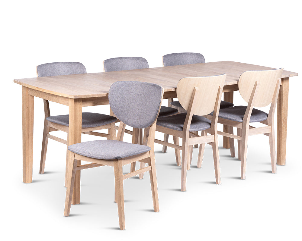 Kivik 160/210 spisebord er et elegant ovalt bord med buede kanter i massiv hvitoljet eik. Den medfølgende ileggsplaten(50cm) gjør det enkelt å forlenge bordet til 210 cm, slik at du får ekstra plass når du trenger det. Den lyse eikefinishen gir et friskt og moderne uttrykk som passer perfekt i skandinaviske hjem. Et stilrent og funksjonelt spisebord som kombinerer tidløs design med praktisk bruk – ideelt for både hverdagsmåltider og festlige anledninger.