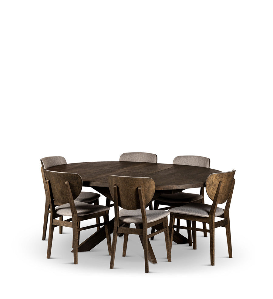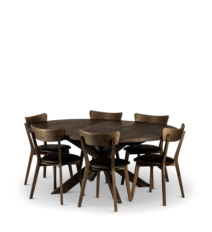 Hjemse spisebord i massiv eik er et bord i rund eller oval form med medfølgende 1x ileggsplate(40cm) som enkelt kan oppbevares under bordplaten når den ikke er i bruk. Bordet kombinerer praktisk funksjon med et varmt og naturlig uttrykk, perfekt for både små og store måltider. Den solide konstruksjonen og det tidløse designet gjør Hjemse spisebord til et allsidig og innbydende midtpunkt i hjemmet.