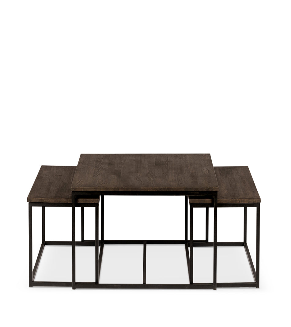 Kungälv sofabord/settebord er et sett med tre bord i røykoljet massiv eik med ben i svart metall – en perfekt kombinasjon av naturlig varme og moderne uttrykk. Med sitt rene formspråk og skandinaviske design passer bordene inn i både moderne og klassiske hjem. Bruk dem samlet som sofabord eller hver for seg som sidebord for en fleksibel og harmonisk innredning. Den røykoljede eiken fremhever treets vakre struktur og gir rommet et eksklusivt preg.