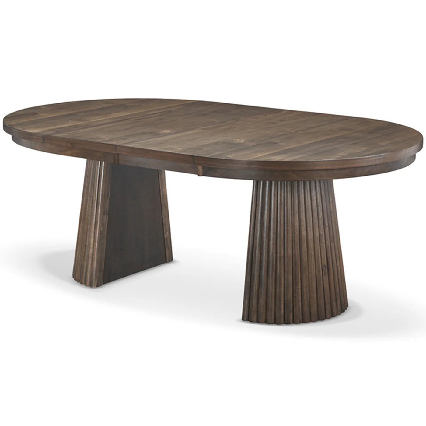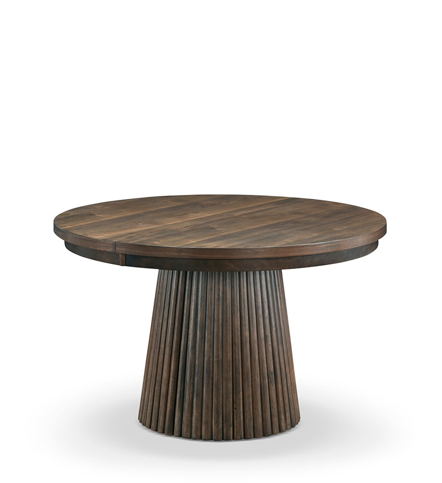 Øckerö spisebord er et elegant bord i finer med to innleggsplater som gir ekstra plass ved behov. Det koniske understellet i massivt tre gir et moderne og stilrent uttrykk, samtidig som det sikrer stabilitet og kvalitet. Bordet passer perfekt til både hverdagsbruk og festlige anledninger, og tilfører spisestuen et sofistikert og tidløst preg. Et praktisk og elegant valg for det moderne hjemmet.