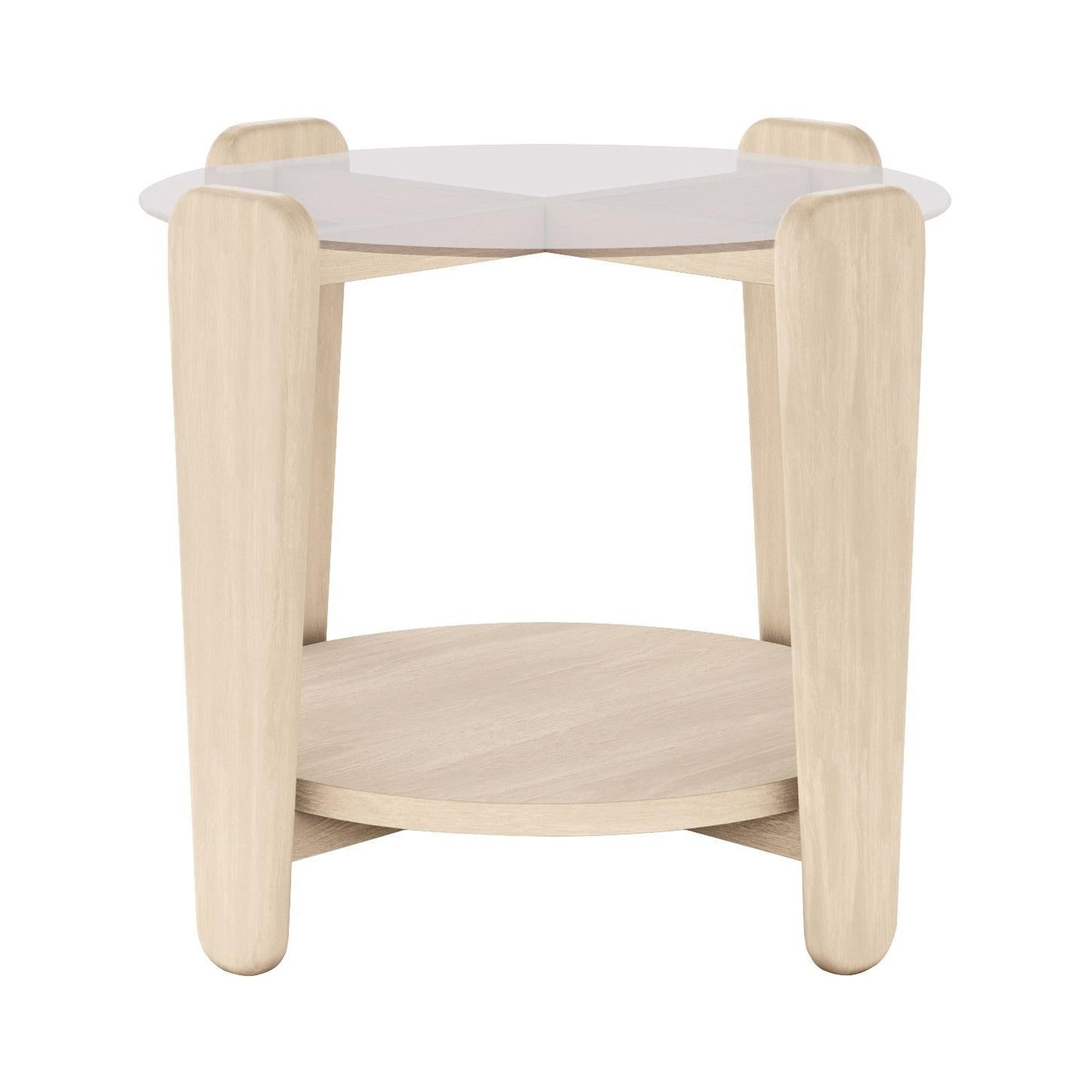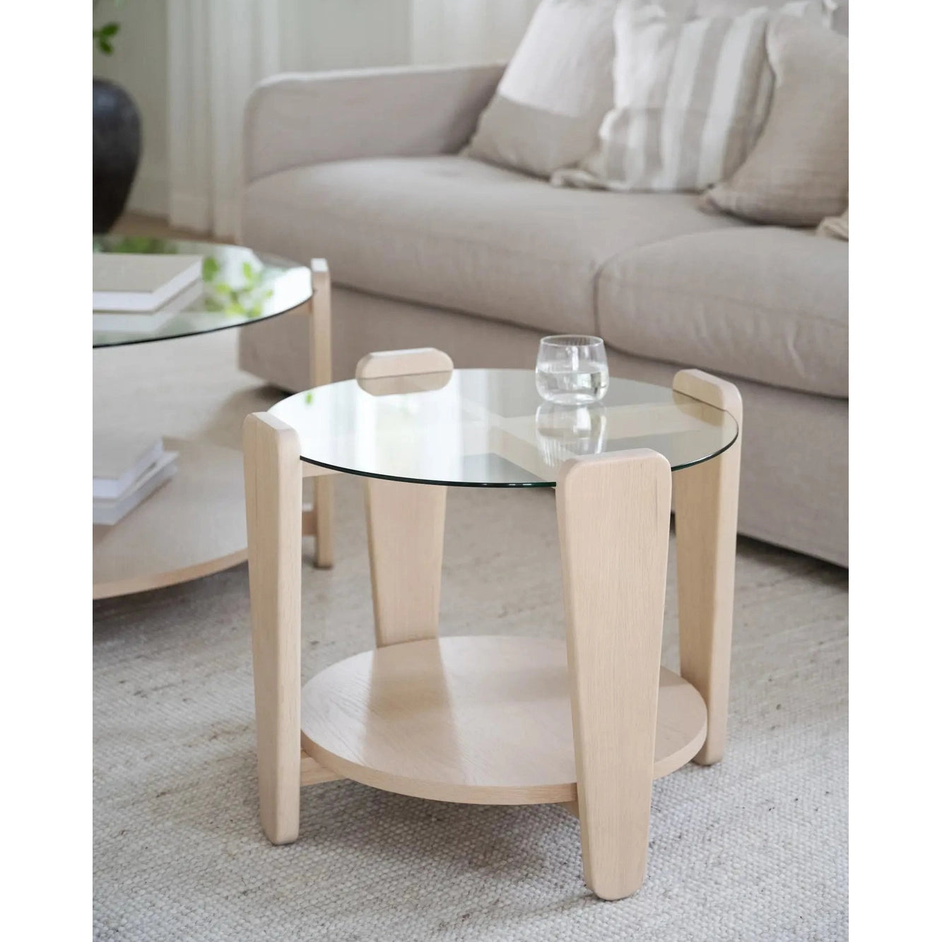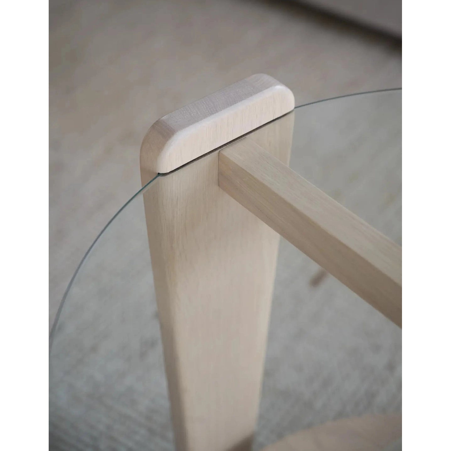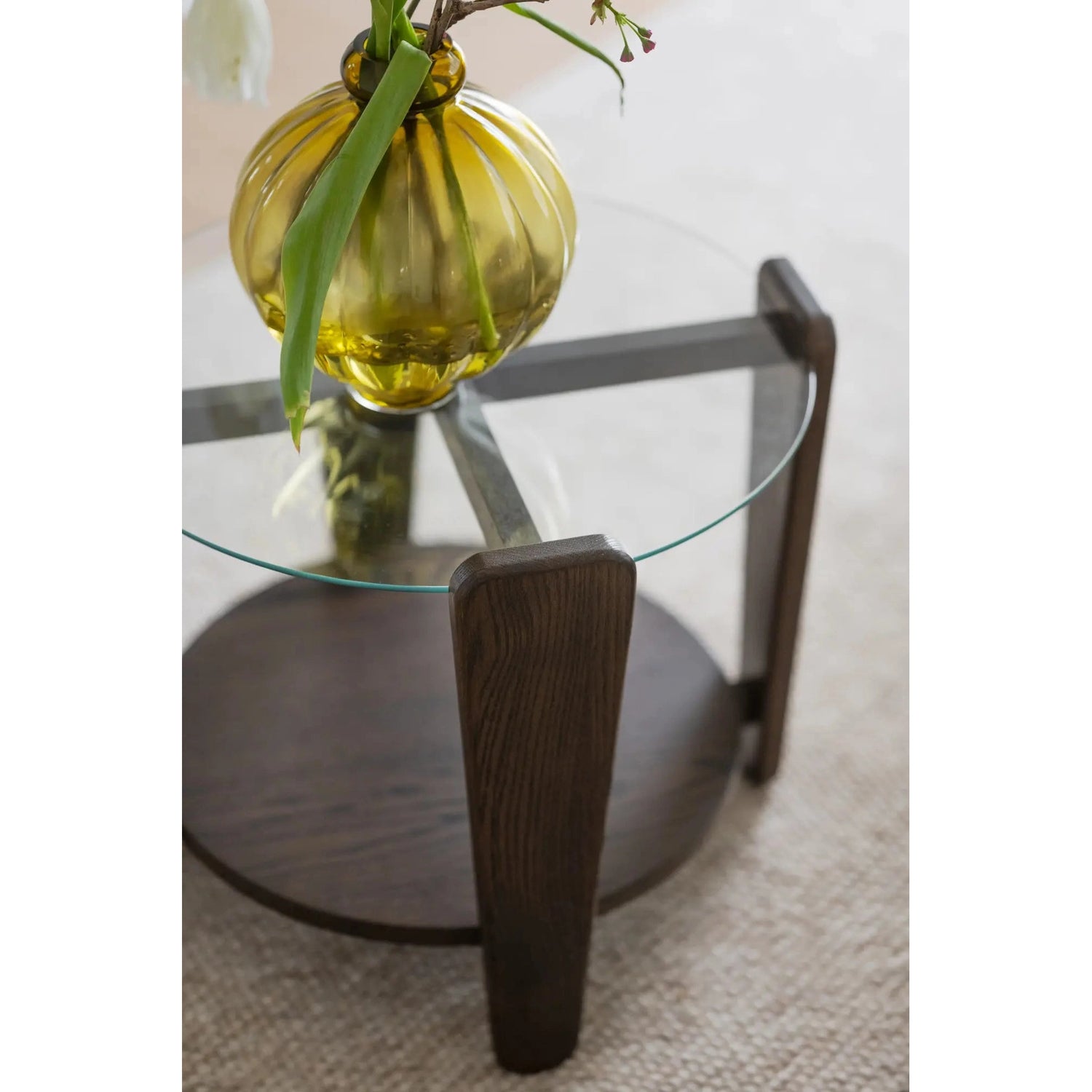 Oppdag Arran kaffebord Ø52, et elegant og moderne møbel som kombinerer skandinavisk design med funksjonalitet. Dette kaffebordet har en stilren glassplate som møter en solid eikebase, noe som skaper en smakfull kontrast og gir et sofistikert preg til stuen din.