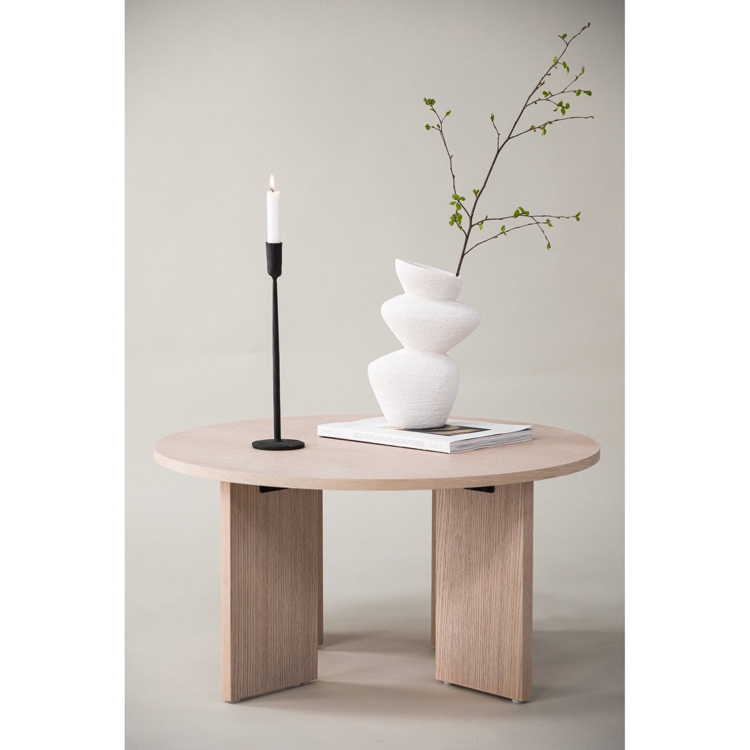 Akerön - et sofabord som er helt i tråd med trendene! Topplaten er rund i pusset tre og understellet dekorativt med fire støtteplanker i samme materiale. Den gjennomtenkte designen imponerer og skaper en hyggelig øyefang foran sofagruppen. Pynt med en fin vase og noen lysestaker for en hjemmekoselig følelse og følg våre vedlikeholdsråd for de beste tipsene om hvordan du får bordet til å vare over tid!