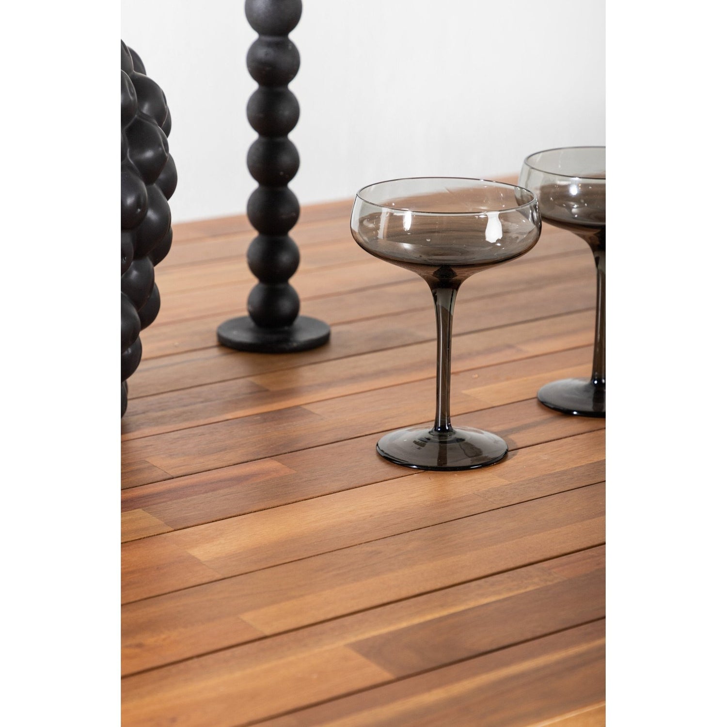 Spisebordet Bois imponerer med sine rette nordiske former og klassiske design! Bordplaten er i dekorativ akasie og bordbenene i stilig svart metall. Match med et par deilige spisestoler slik at du får en komplett matgruppe å samle venner og familie rundt - gjør deg klar for måltider utendørs og nyt hyggelig selskap denne sommeren! Pleieanbefaling: For at utemøblene dine i akasie / hardtre skal beholde finishen sin, bør de behandles med olje. Siden treverket i seg selv ikke er så fet av natur, må det oljes litt nå og da, selv i løpet av sesongen. Nylig kjøpte møbler bør mettes med olje, påfør flere lag etter hverandre slik at det maksimale med olje absorberes. Tørk av det som blir overflødig.