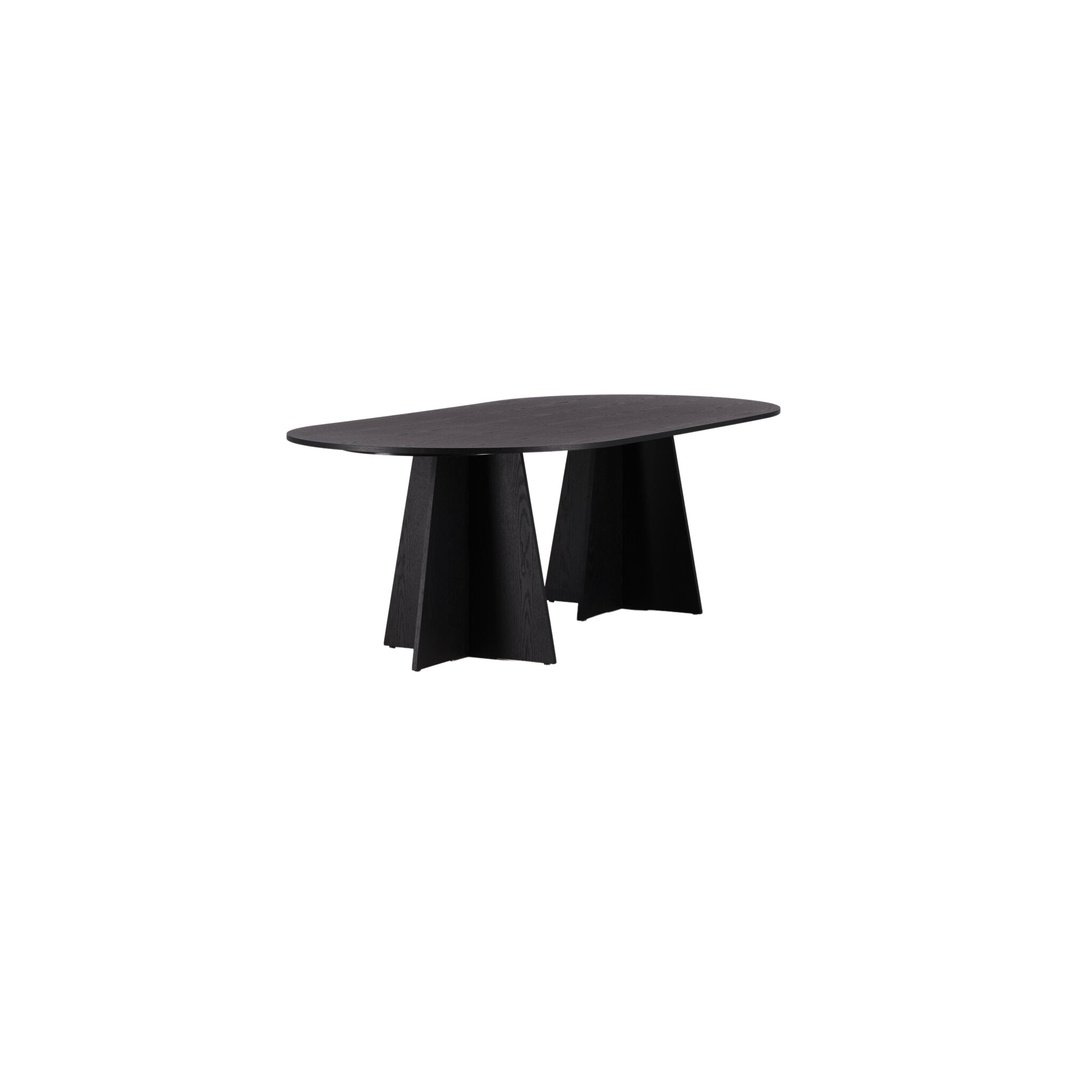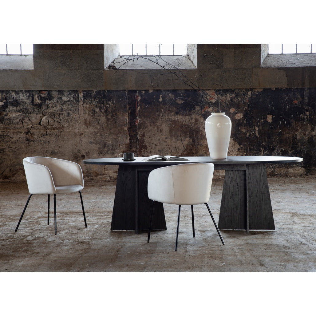 Møblér hjemmet med et spisebord som imponerer! Bootcut har en unik design med en oval bordplate i MDF med finer og en spesiell ramme med to kjegleformede ben i åpen design. Den tynne bordplaten skaper et minimalistisk inntrykk og er en smakfull kontrast til den mer robuste rammen. Match med et par komfortable spisestoler og du vil få en komplett matgruppe som står seg over tid!