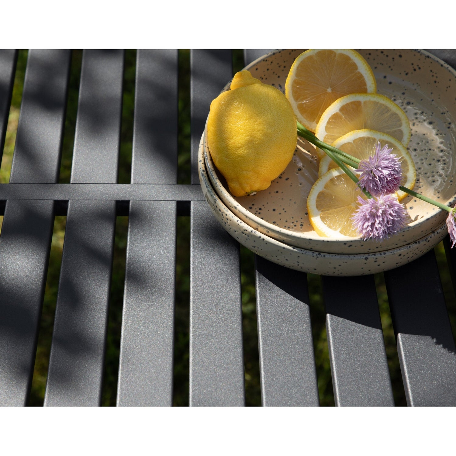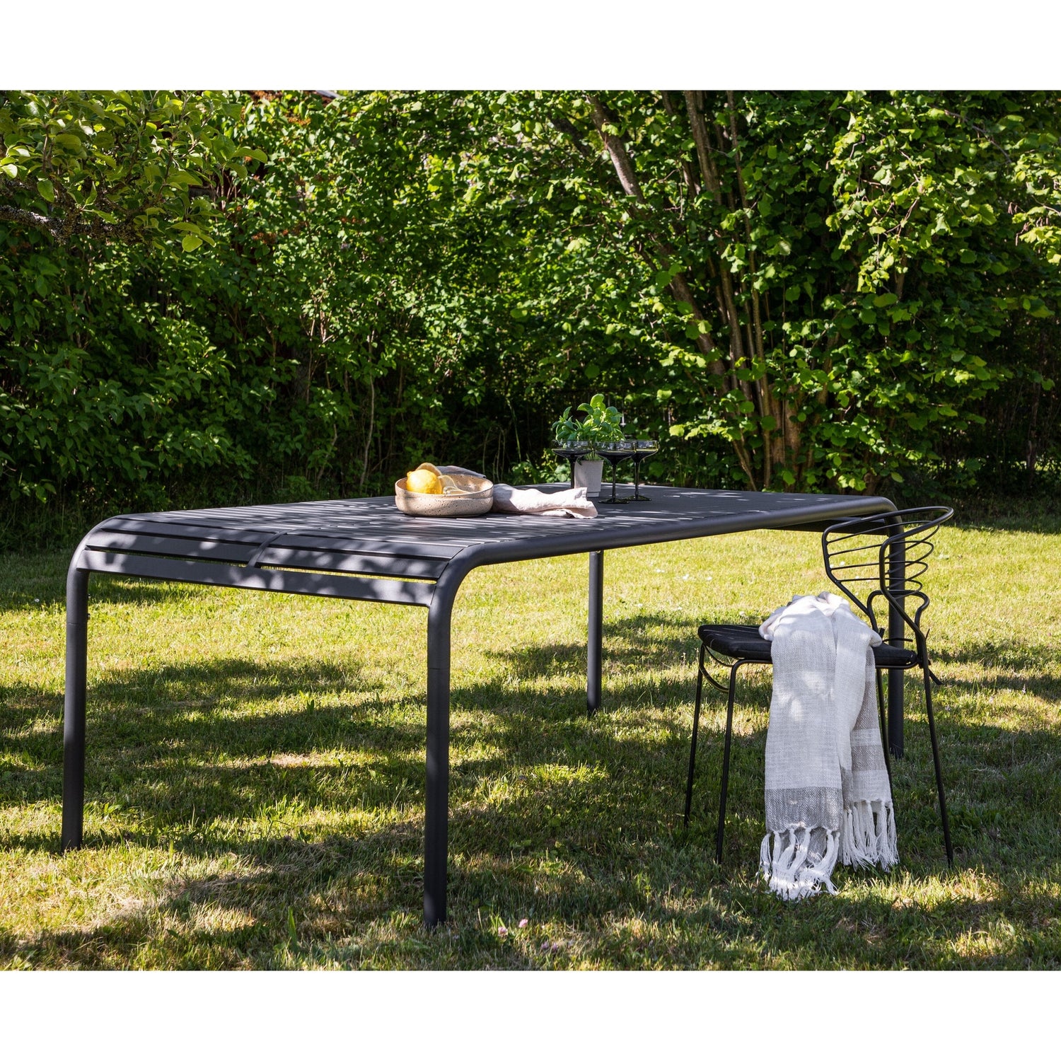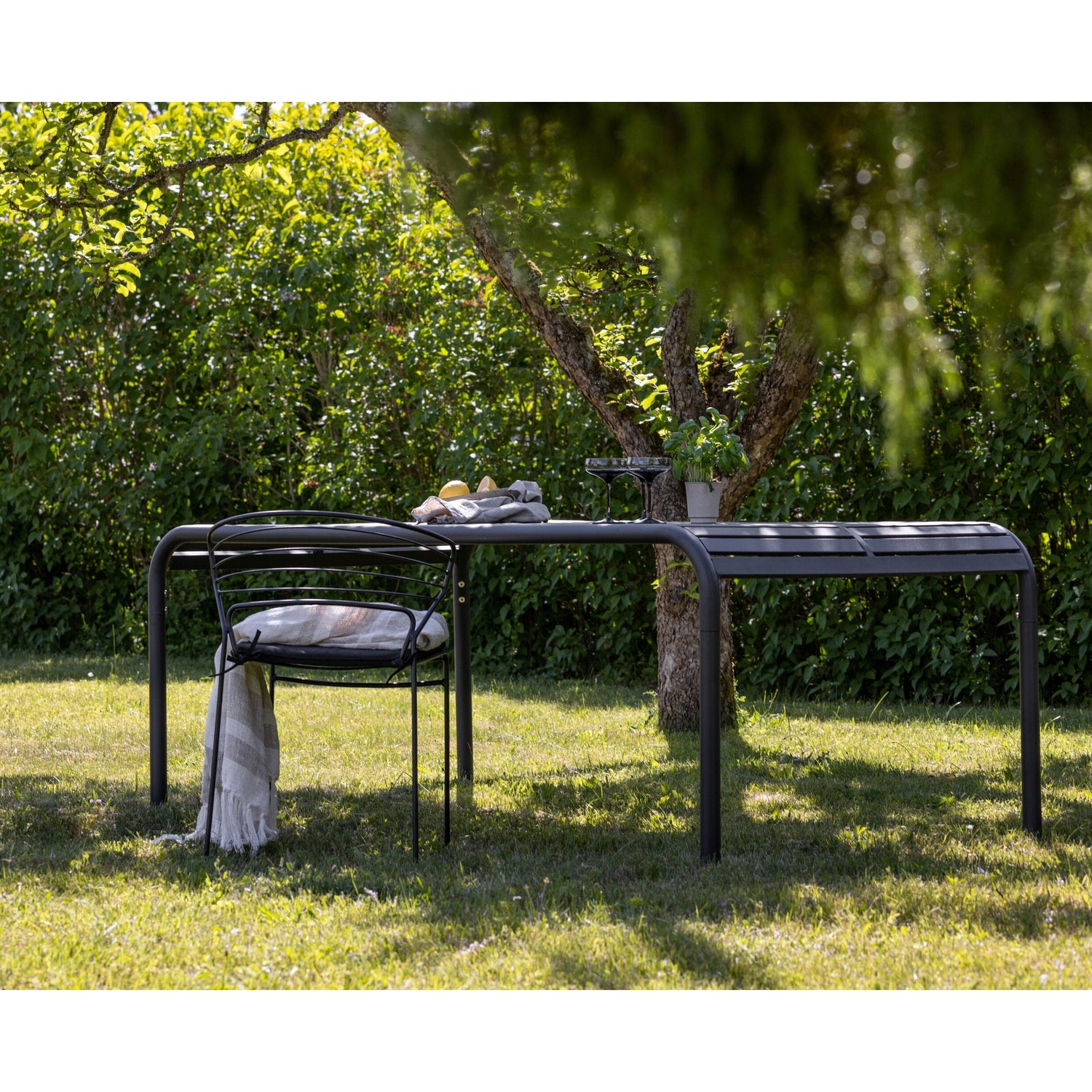 Spisebordet fra Borneo-serien har fleksible former og et tidløst skandinavisk design! Bordplaten er ribbet og bølger langs kantene ved bena. Helt laget av antrasitt aluminium, som gir deg et holdbart bord som er enkelt å flytte rundt. Kombiner med et par komfortable spisestoler, så får du en komplett spisestuegruppe som vil lyse opp herlige måltider på terrassen din!