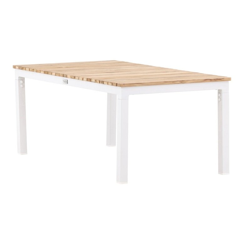 Kaffebordet Brazilia er et nytt tillegg til serien. Understellet er laget av aluminium med en teakskive som gir en varm følelse. Blanding av materialer i interiøret gir en mer levende følelse til terrassen din. Pleieanbefalinger: Våre teakmøbler er produsert av sertifisert teak som er dyrket for formålet og ikke ødelagt fra delikate regnskoger. Som et av de mest holdbare trevirkene inneholder teak mye olje som vanligvis er nødvendig for at materialet ikke sprekker. Fordi tretypen naturlig inneholder mye olje, trenger ikke møblene å impregneres så ofte. Imidlertid, hvis du vil beholde fargen, må du behandle møblene med en spesiell olje. Sørg for at overflaten er ordentlig tørket slik at støv og skitt ikke setter seg under oljen. Vi anbefaler at du oljer møblene før bruk, første gang bør også undersiden av bordplaten impregneres for å redusere risikoen for sprekker, fordi siden av bordet som er oljet sveller litigant. Det levende materialet betyr at det er variasjoner både i farge og årer, noe som igjen gjør hvert møbel unikt. Tørk opp væske som søles - direkte. Når møblene er ute om sommeren, er de eksponert for både vær og vind, noe som igjen kan føre til svart mugg.