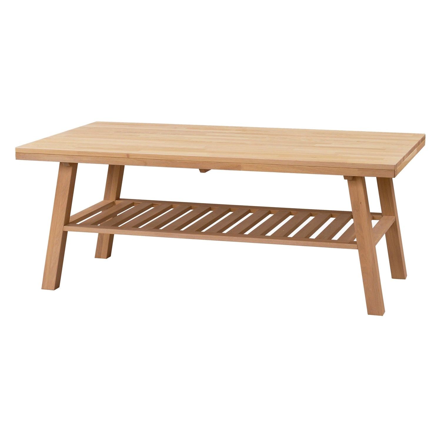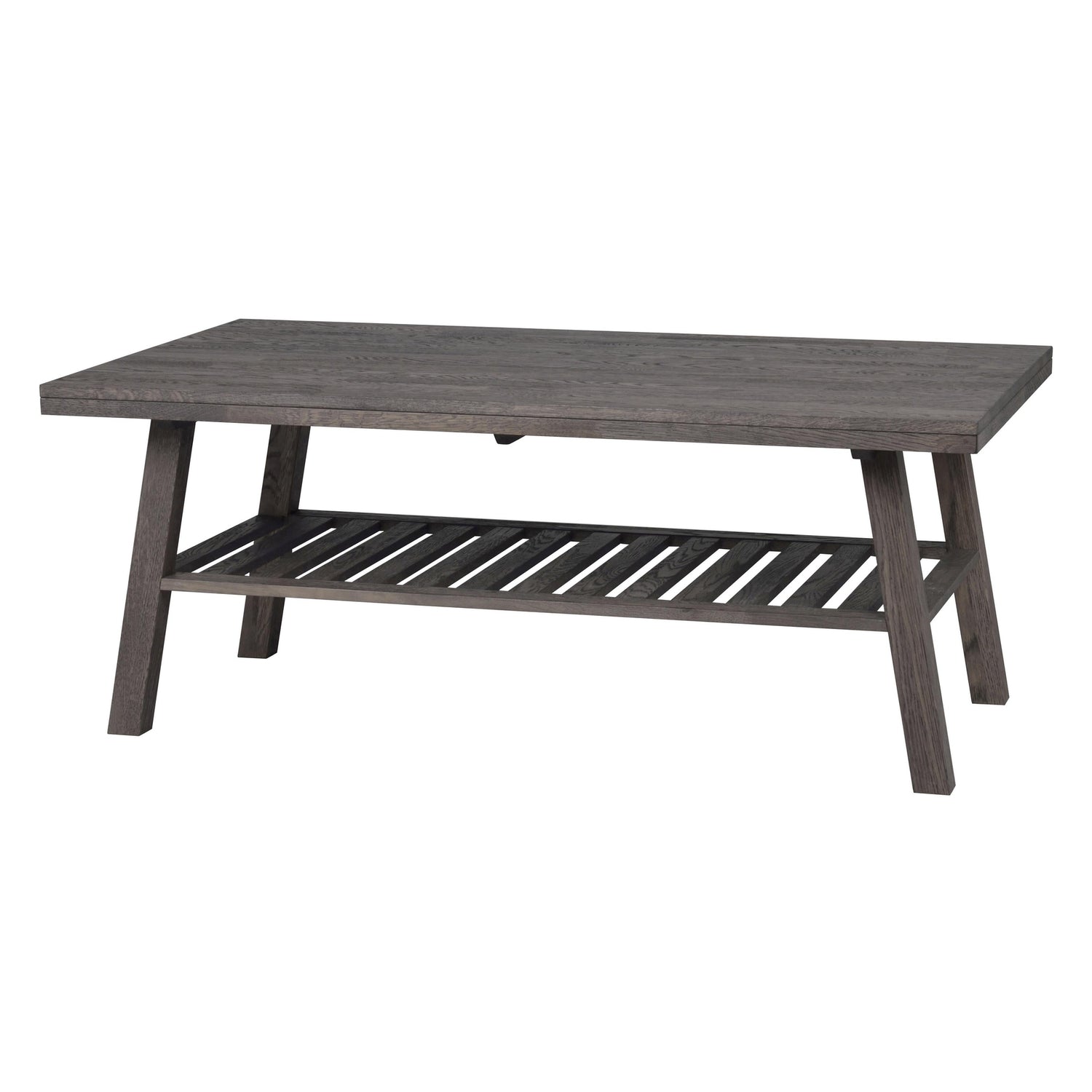 Oppdag vårt tidløse kaffebord med et elegant design som passer perfekt inn i ethvert moderne hjem. Dette kaffebordet har lett splayede ben som gir en unik stil, samtidig som det er praktisk med en romslig lagringshylle. Laget av solid fingerflettet europeisk eik, er bordet lakkert for å gi en holdbar og vakker overflate.