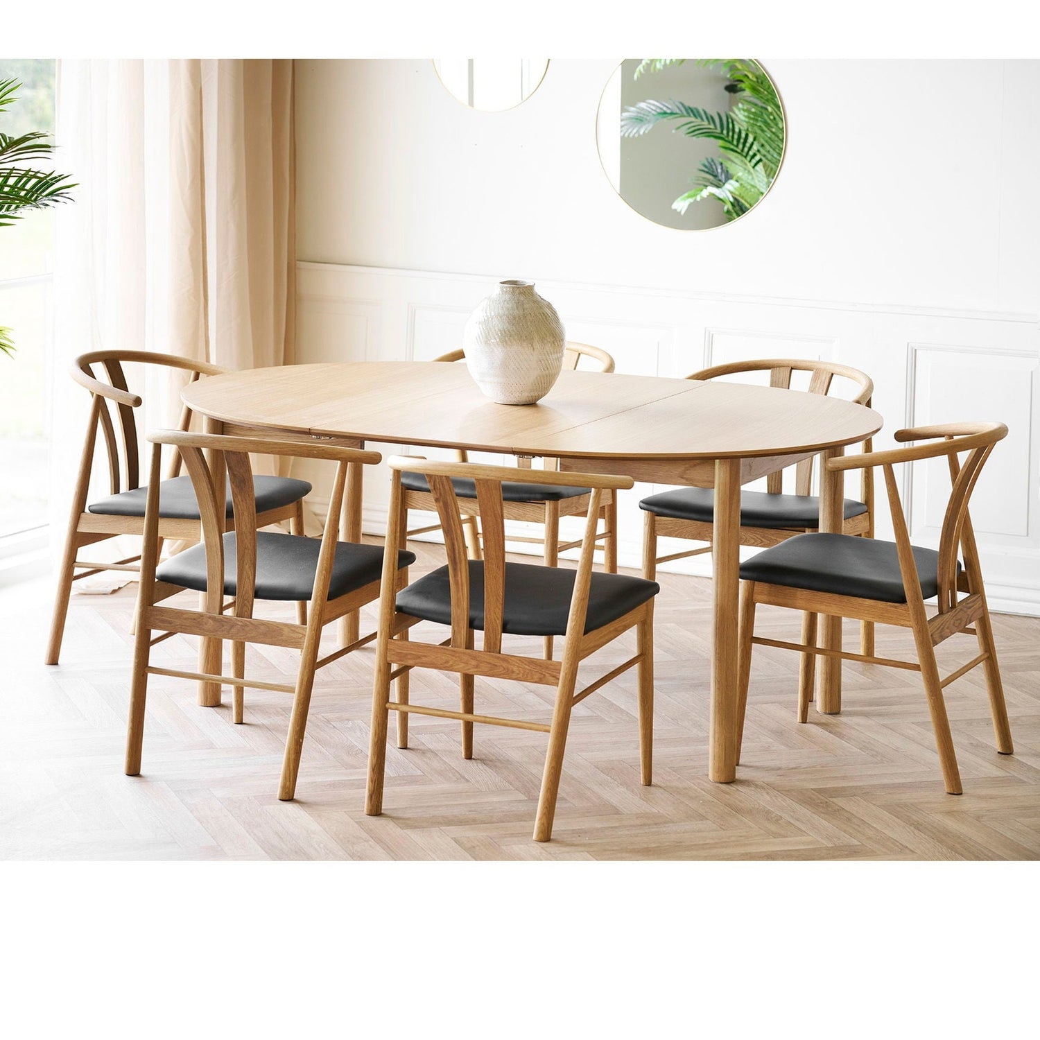 Spisebord i eikefiner med uttrekkbare plater.