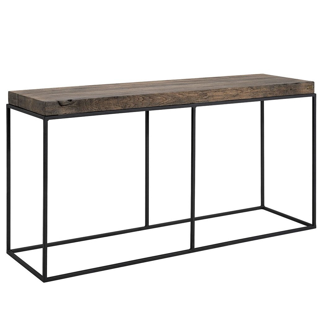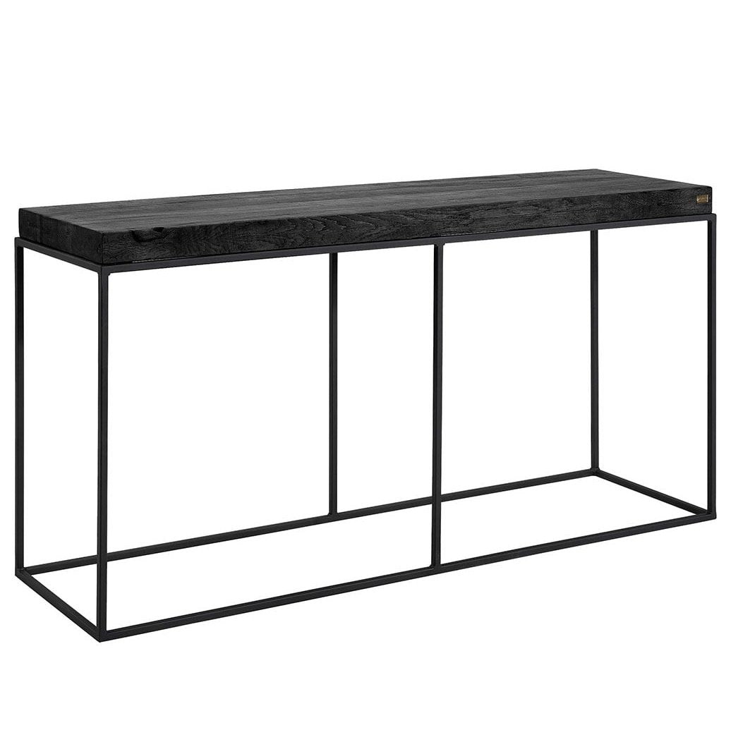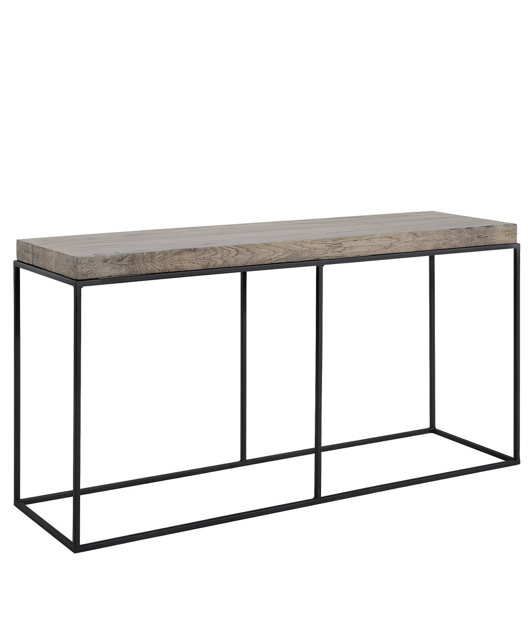 Konsollbordet Carlisle er laget av massiv eik med en solid metallbase, og passer perfekt inn i ulike interiørstiler. Den 6 cm tykke eikeplaten gir et robust uttrykk, mens den tynne metallbasen skaper en interessant kontrast. Hvert bord er unikt med synlige naturlige grener og sprekker. Eik er en slitesterk tresort av høy kvalitet. Anbefales for innendørs bruk. Oppdag også vår serie med sofabord og mediebenker.