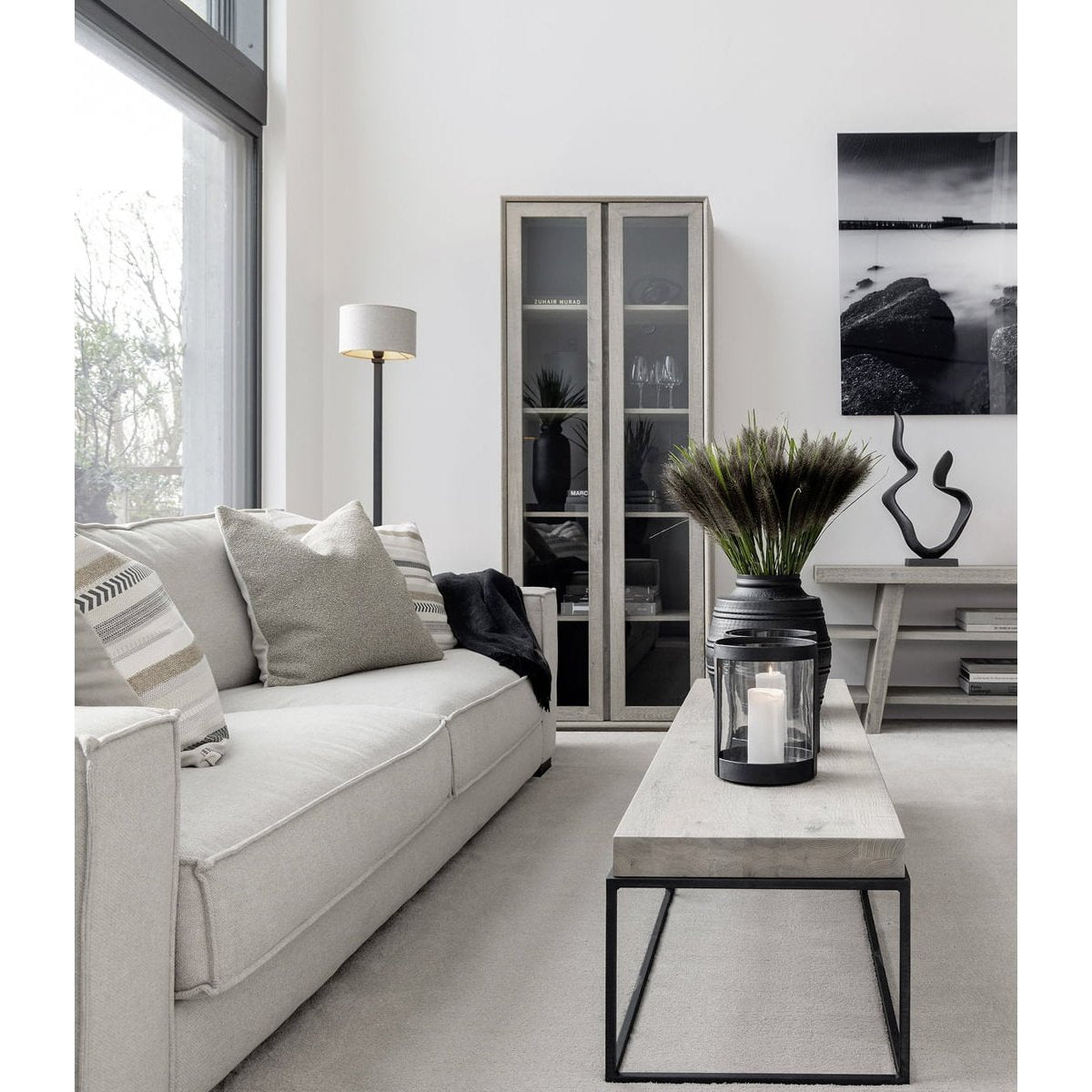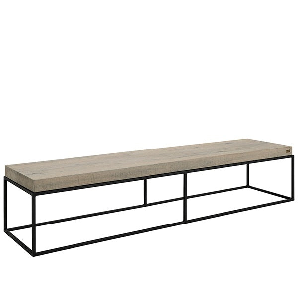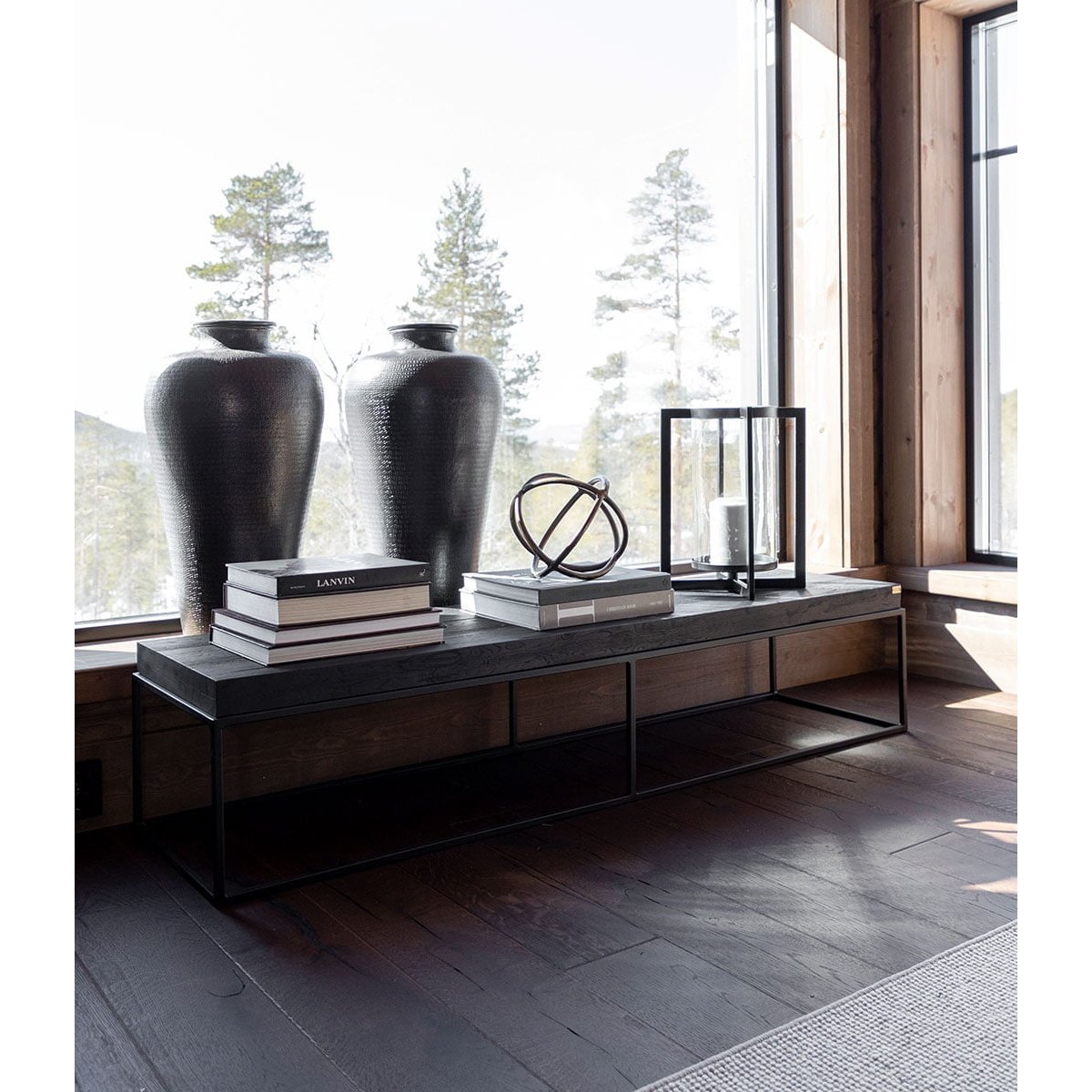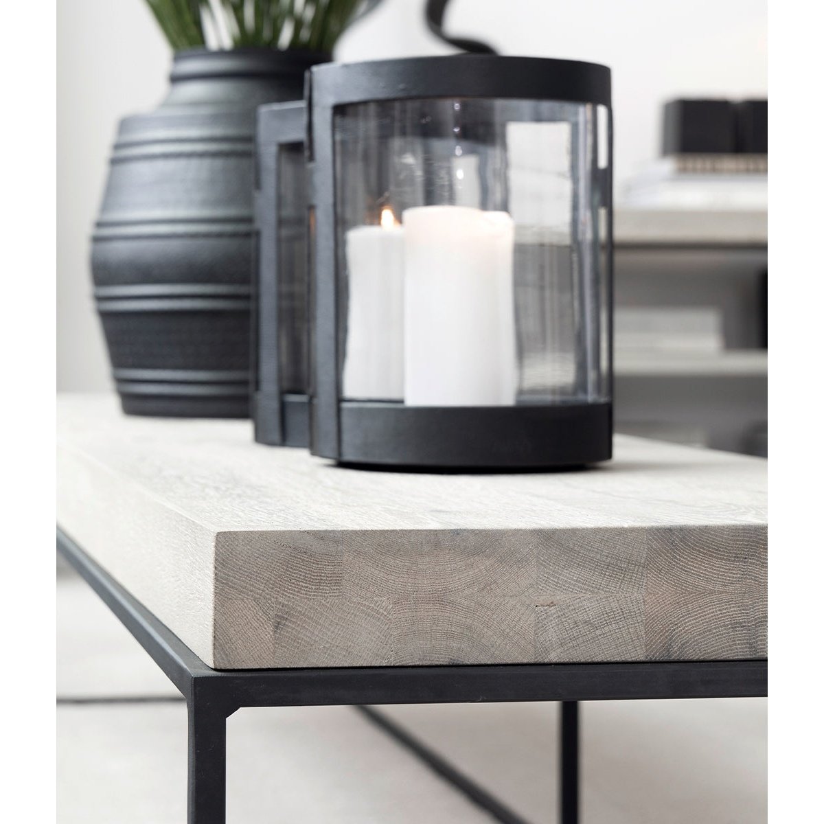 Konsollbordet Carlisle er laget av massiv eik med en solid metallbase, og passer perfekt inn i ulike interiørstiler. Den 6 cm tykke eikeplaten gir et robust uttrykk, mens den tynne metallbasen skaper en interessant kontrast. Hvert bord er unikt med synlige naturlige grener og sprekker. Eik er en slitesterk tresort av høy kvalitet. Anbefales for innendørs bruk. Oppdag også vår serie med sofabord og mediebenker.