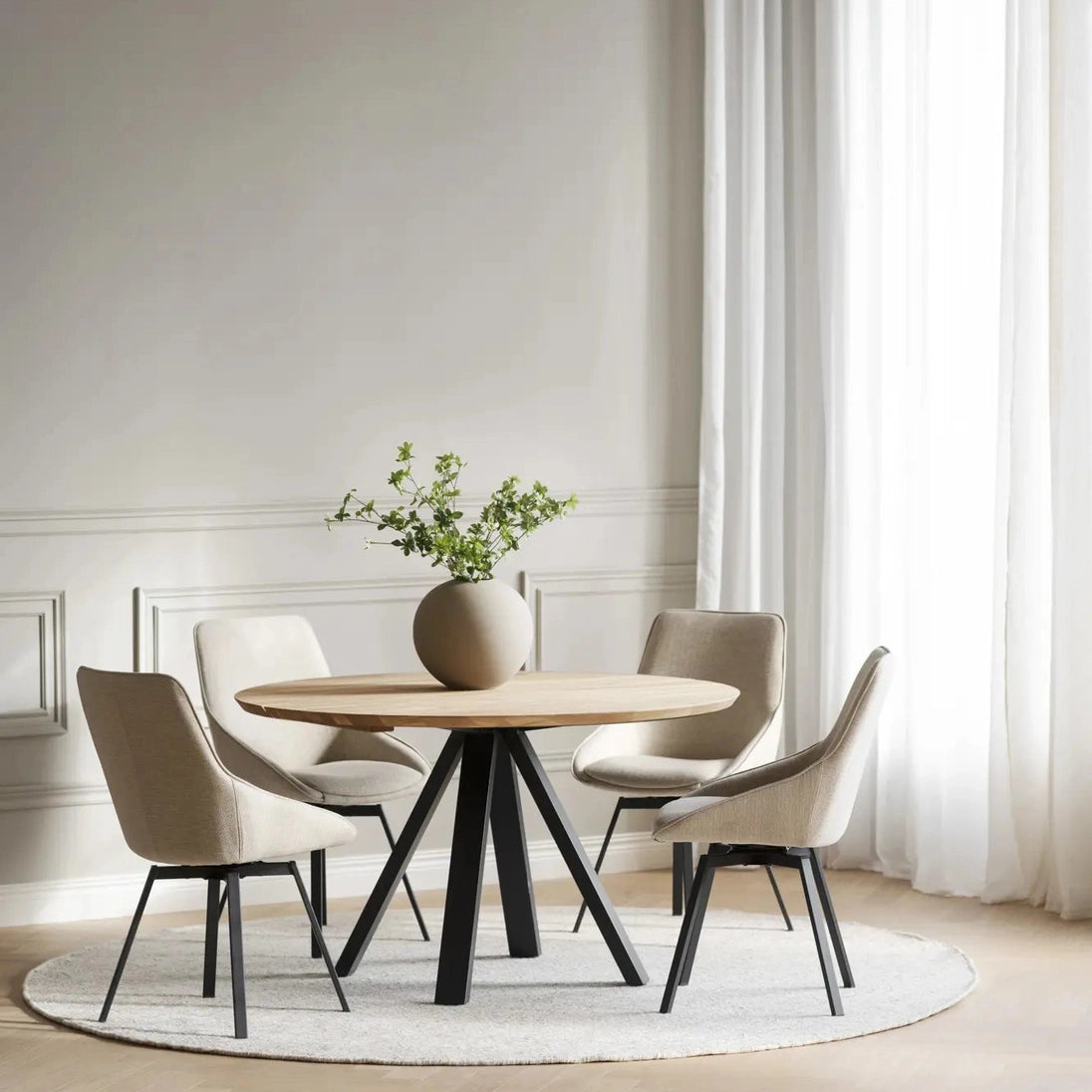 Med sitt tidløse design og høye kvalitet, er Carradale spisebord Ø130 det ideelle valget for både hverdagsbruk og spesielle anledninger. Gjør måltidene dine til en opplevelse med dette elegante og funksjonelle spisebordet. Bestill ditt Carradale spisebord i dag og opplev forskjellen!