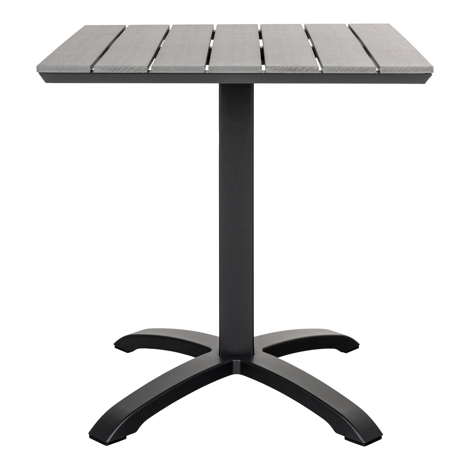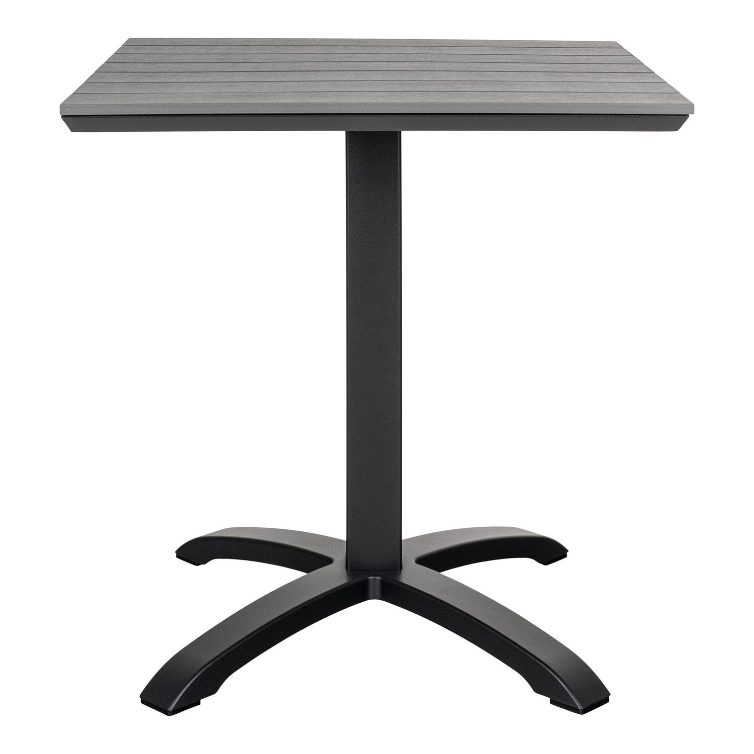 Dette stilige cafébordet kombinerer moderne design med funksjonalitet, og er det perfekte tilskuddet til enhver uteplass eller kafé. Bordplaten er laget av slitesterkt grått nonwood-materiale, som gir et elegant utseende samtidig som det krever minimalt vedlikehold. De sorte benene gir en flott kontrast til bordplaten og sikrer stabilitet og holdbarhet. Dette bordet er ideelt for både innendørs og utendørs bruk, og gir en innbydende atmosfære for dine gjester.