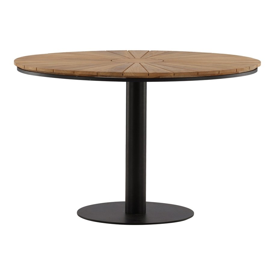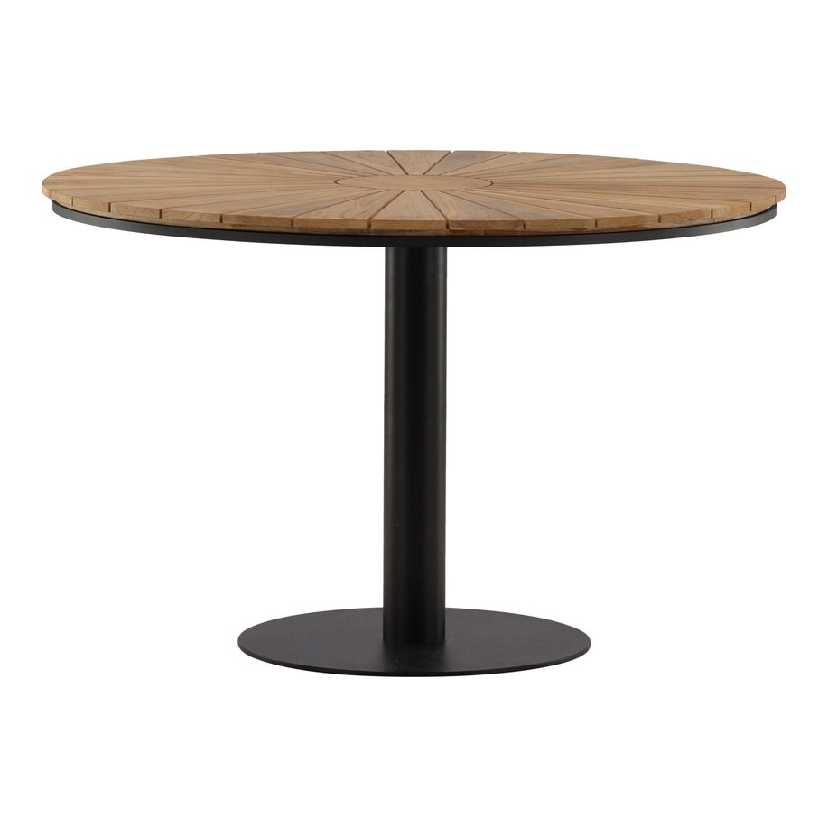 Den Croft spisebordet med en diameter på 120 cm er det perfekte møbelet for å blande form og funksjon. Dens runde design er både praktisk og elegant, noe som gjør det enkelt å ønske flere gjester velkommen til middagen din. Dette er bordet der ingen ender opp i kanten. Med god plass til alle rundt bordet, kan du skape minneverdige øyeblikk med dine kjære uten trange områder. Bordet har en aluminiumsramme som gir stabilitet og holdbarhet, og en teak bordplate, kjent for sin naturlige skjønnhet og motstand mot utendørs bruk. Dette bordet er ideelt for utendørs bruk. Skap en innbydende og avslappet atmosfære i hagen eller på terrassen din med dette holdbare og praktiske spisebordet. La det bli samlingspunktet for dine sammenkomster og nyt samholdet rundt Croft. Dette spisebordet er perfekt for å skape minneverdige øyeblikk i frisk luft.