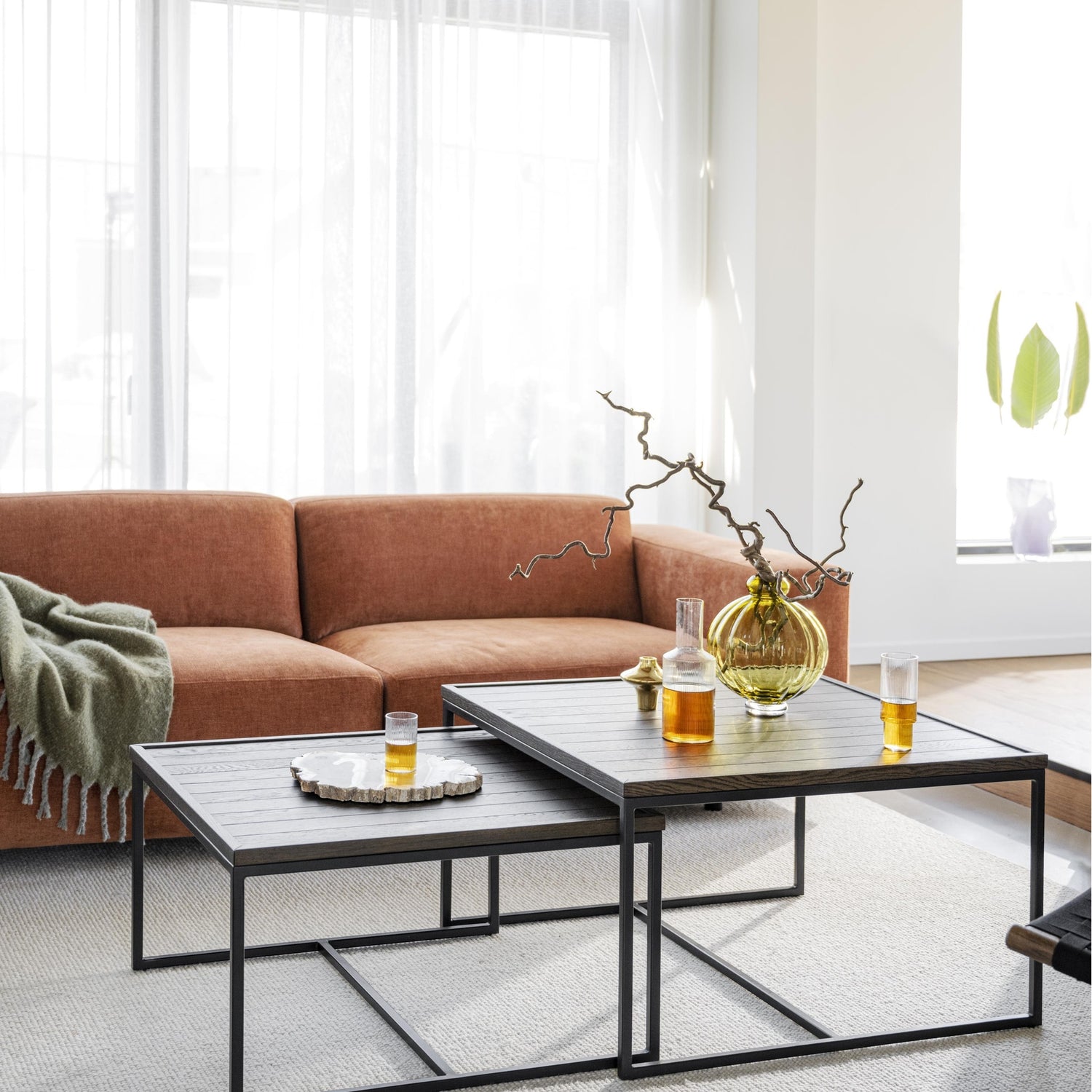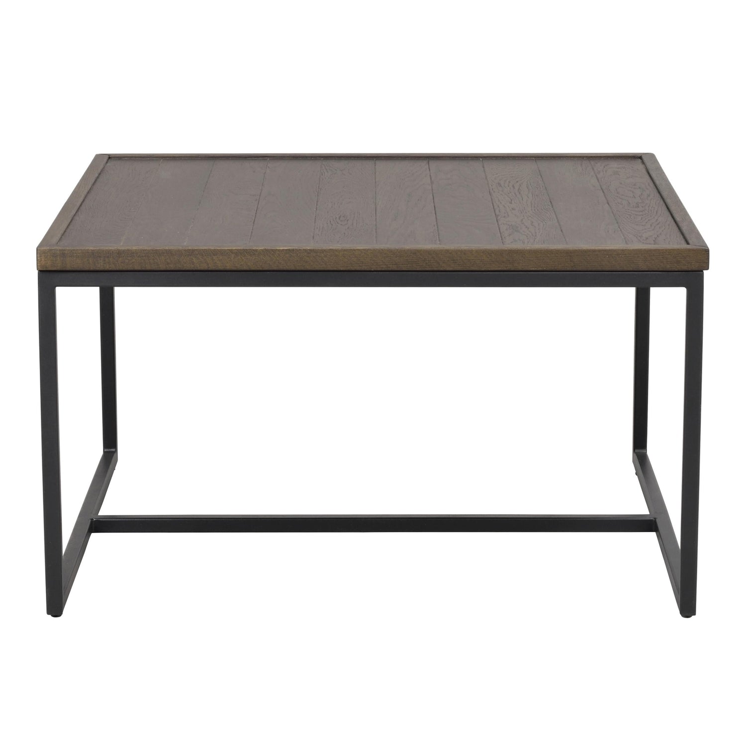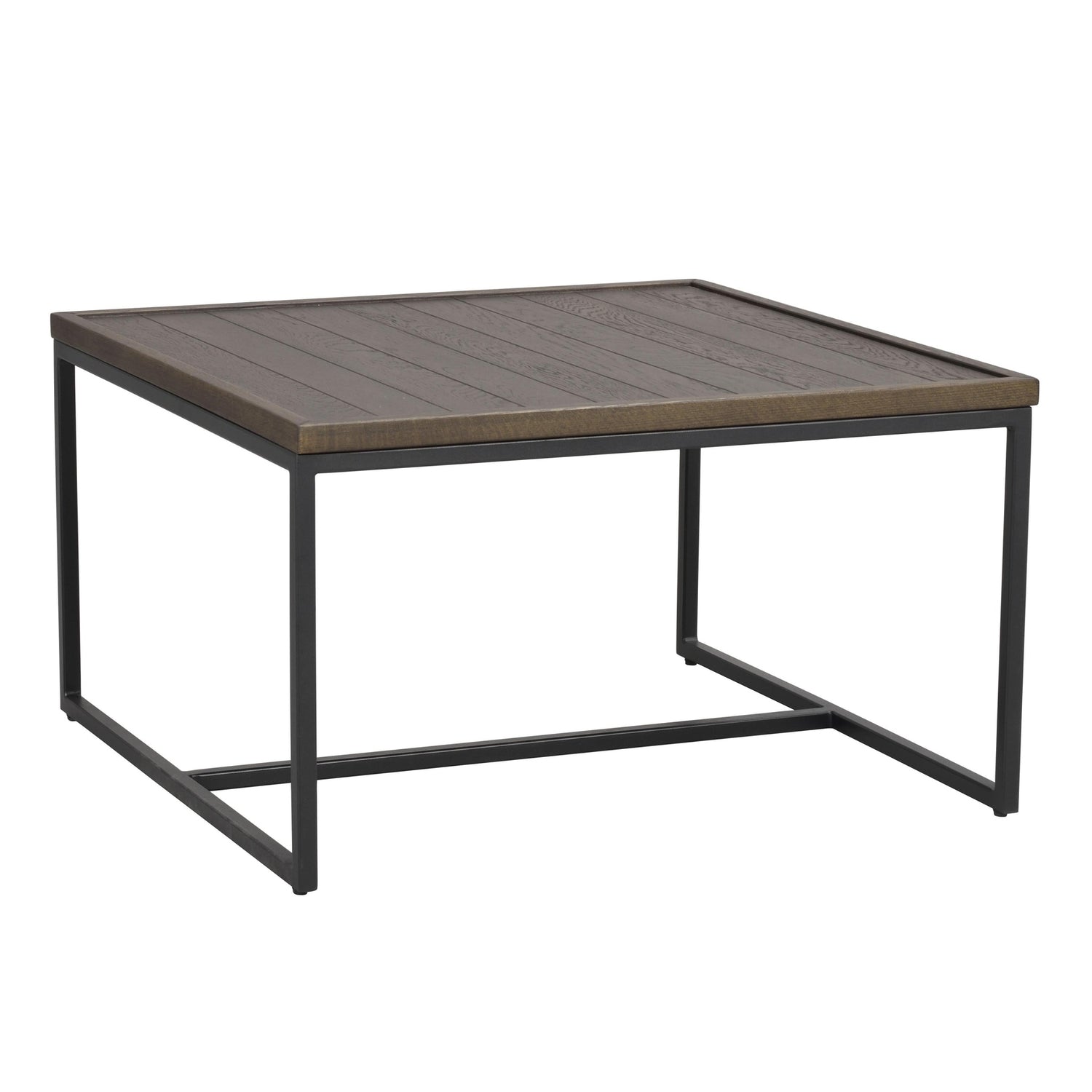 Deerfield kaffebord i brune eik, 70x70 cm, er et stilrent kaffebord med skandinavisk design. Bordplaten har et vakkert mønster av lakkert eik som gir et elegant preg. Den solide kanten rammer inn kaffebordet på en smakfull måte, mens den svarte metallbasen gir en moderne kontrast. Kombiner Deerfield kaffebord 70x70 cm med Deerfield kaffebord 80x80 cm for å skape en stilfull gruppe av nestede bord. Dette bordet passer perfekt inn i ethvert moderne hjem og gir et tidløst preg til stuen. For de som ønsker en lettere atmosfære, er Deerfield også tilgjengelig i hvitvasket eik.