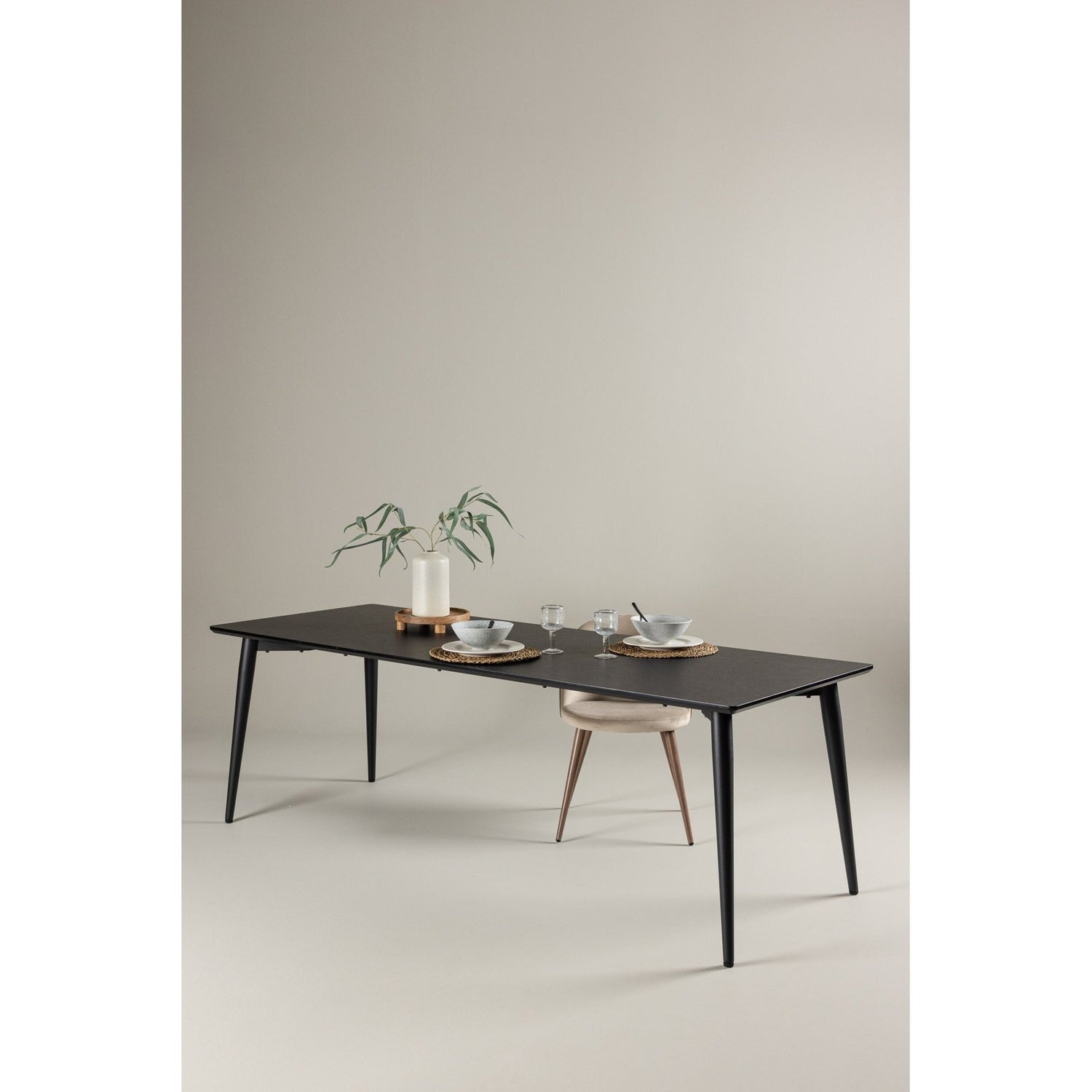 Utforsk Ellis - det robuste spisebordet som vil bli midtpunktet i spisemiljøet ditt. Ellis legger til en elegant og moderne touch til rommet ditt. Bordet er laget med stålben og en MDF-bordplate, og gir en perfekt balanse mellom holdbarhet og stil. Med generøse dimensjoner på 230x85 cm er Ellis-bordet perfekt for sosiale middager og sammenkomster med venner og familie. Dets solide konstruksjon og elegante design gjør det til et pålitelig møbelstykke egnet for enhver anledning. Enten du bruker det til å nyte en familiemiddag eller til å arrangere en fest, vil Ellis skape en trendy og stilig atmosfære i hjemmet ditt. Oppgrader spiseplassen din med det elegante og robuste spisebordet, Ellis.