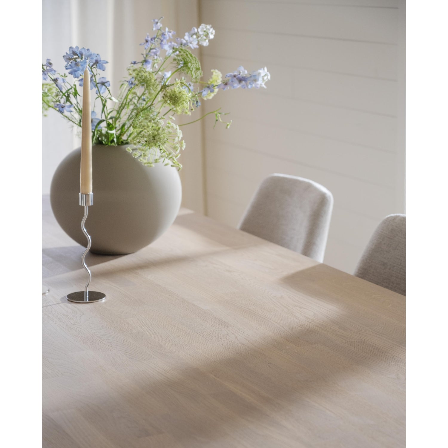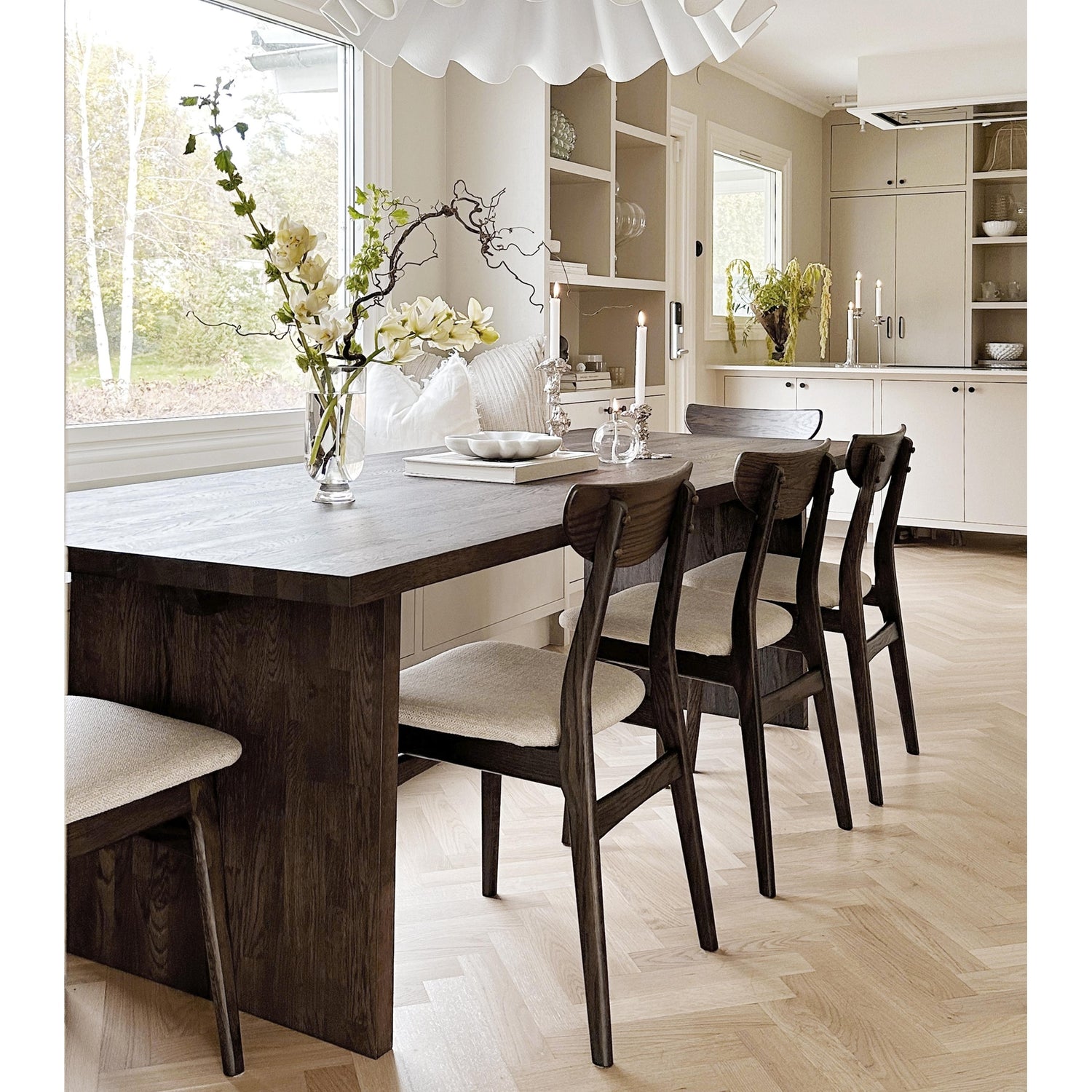 Emmett spisebordet er designet for å vare år etter år, og dets tidløse design gjør det til et ideelt valg for ethvert hjem. Med en overheng på kortsiden på 27,5 cm, gir bordet god plass til både mat og dekorasjoner.