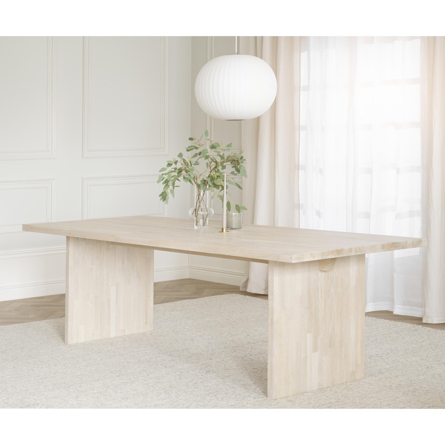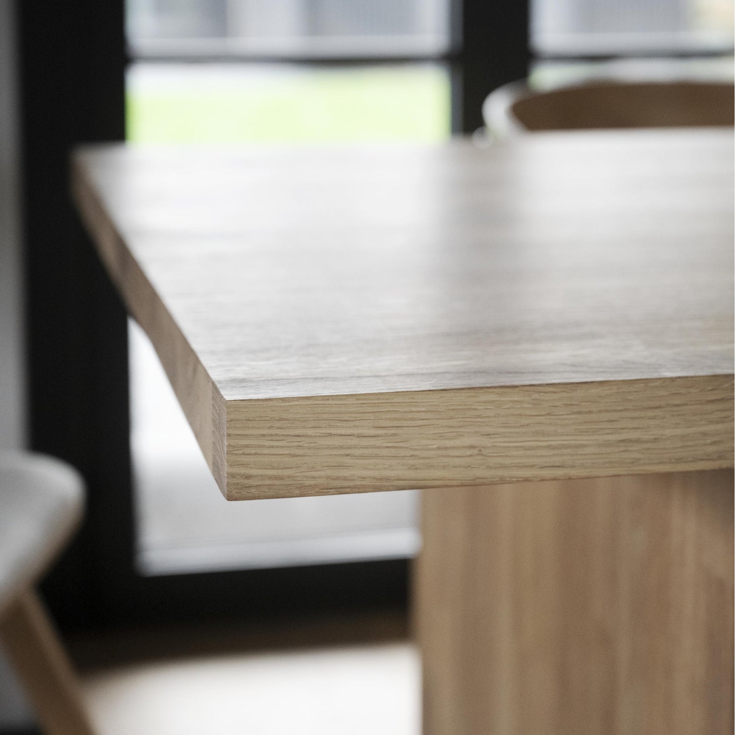 Oppdag den eksklusive Emmett spisebordet, laget av 100% FSC-sertifisert europeisk tre. Dette stilige spisebordet har en solid bordplate med en børstet overflate, som gir et moderne og tidløst uttrykk. De to stabile bena gir bordet en robust konstruksjon, perfekt for både hverdagsbruk og festlige anledninger.