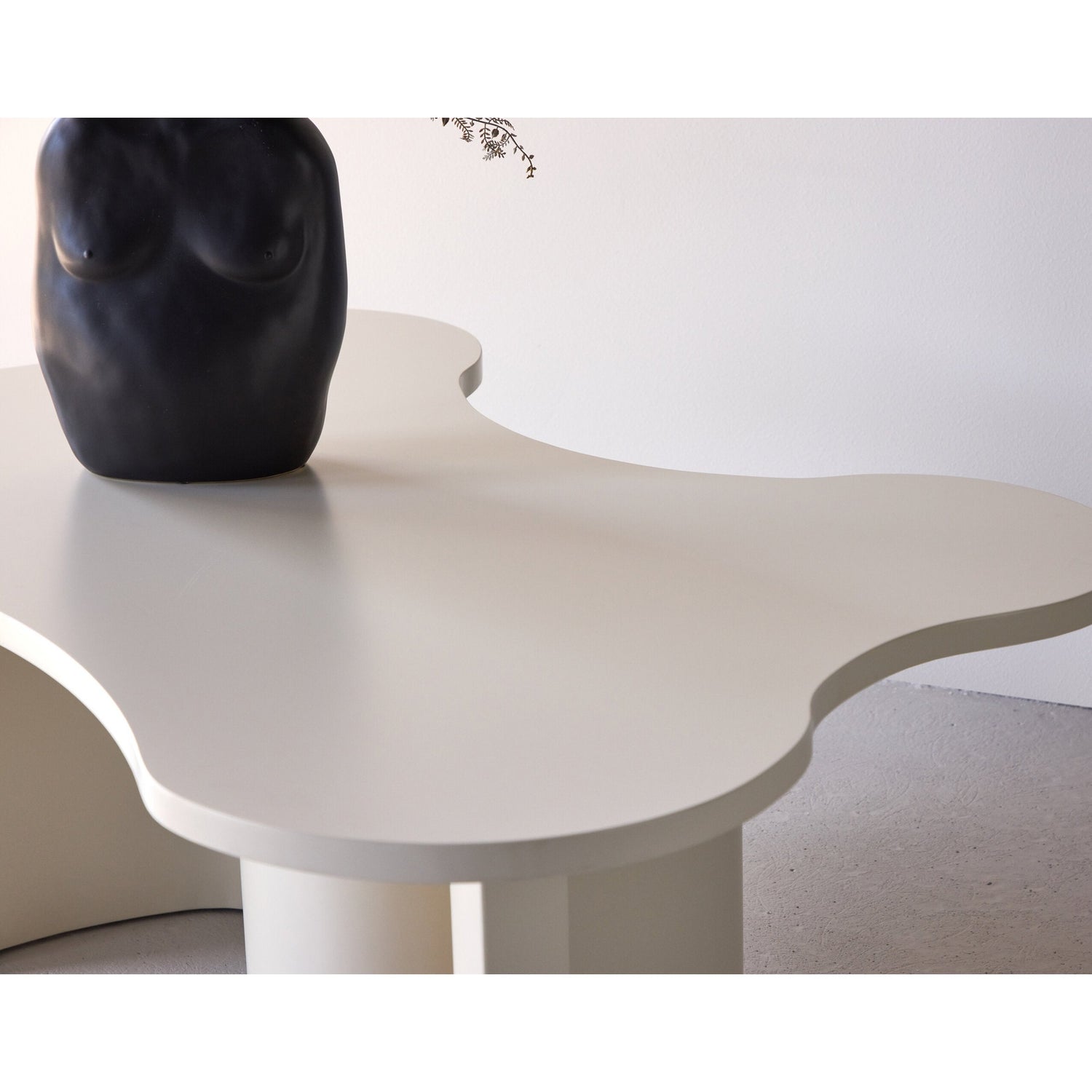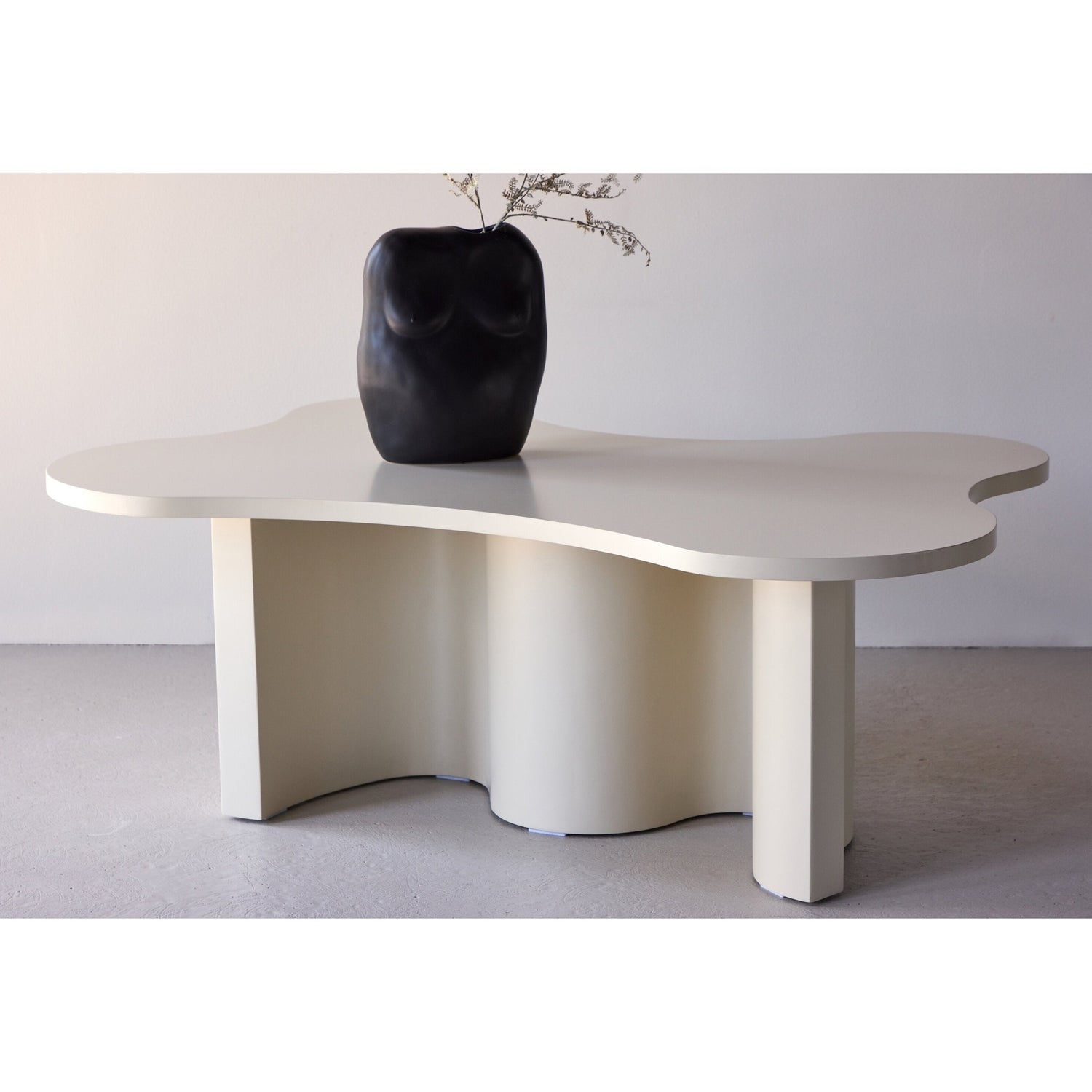 Flow er et sofabord med en myk og leken form. Bordplaten har et avrundet design, og benet går langs hele lengden, noe som gir et unikt og moderne utseende.
