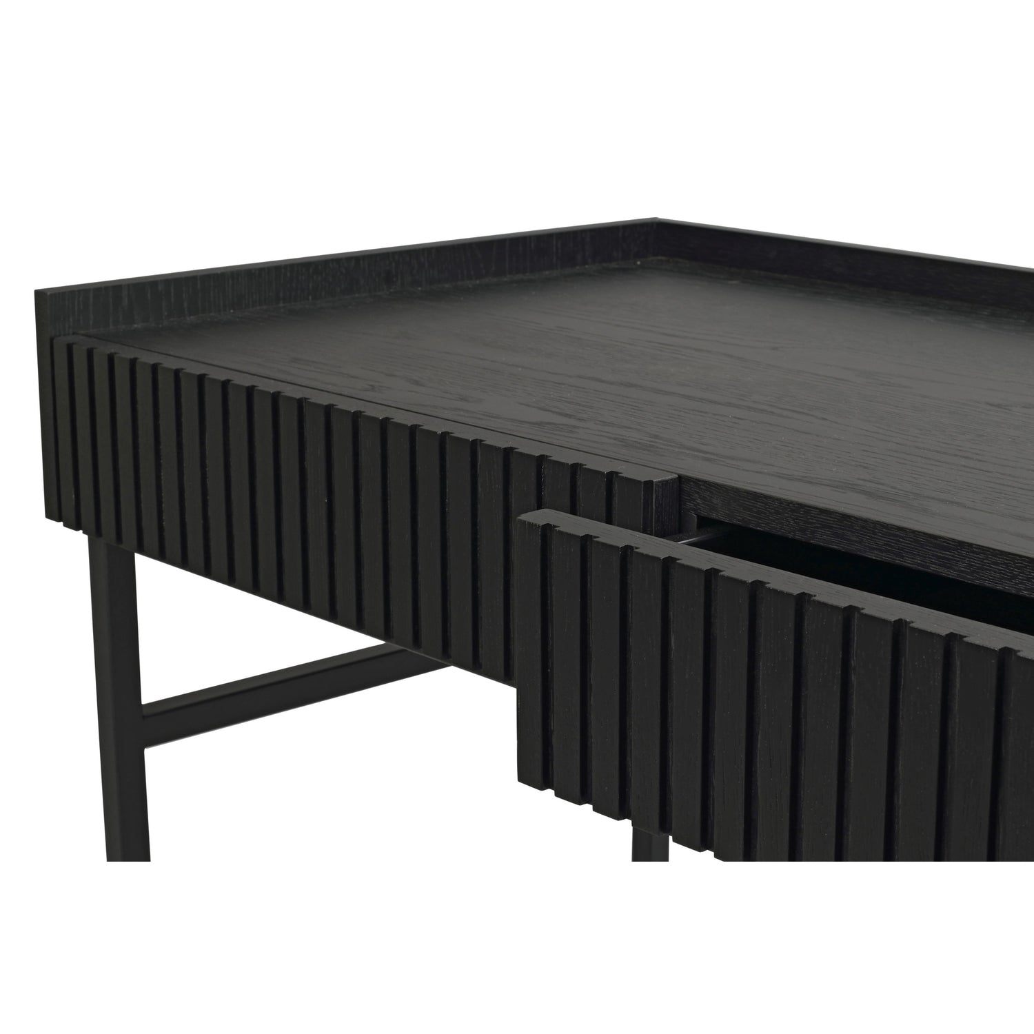 Oppdag Halifax skrivebordet – den perfekte løsningen for ditt stilige hjemmekontor eller som et elegant sminkebord på soverommet. Dette skrivebordet er designet med både funksjonalitet og estetikk i tankene. Med to romslige skuffer, har Halifax skrivebordet skjulte hull som gir deg muligheten til å velge om du vil bruke de medfølgende knottene i børstet metall.