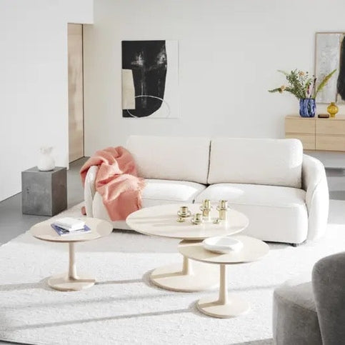 Kombiner gjerne med Hobart kaffebord Ø60 cm, og plasser dem sammen som nestede bord – hvorfor ikke til og med tre bord for å skape en herlig dynamisk følelse i rommet?