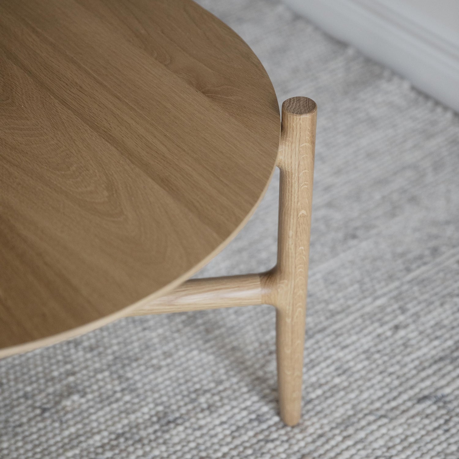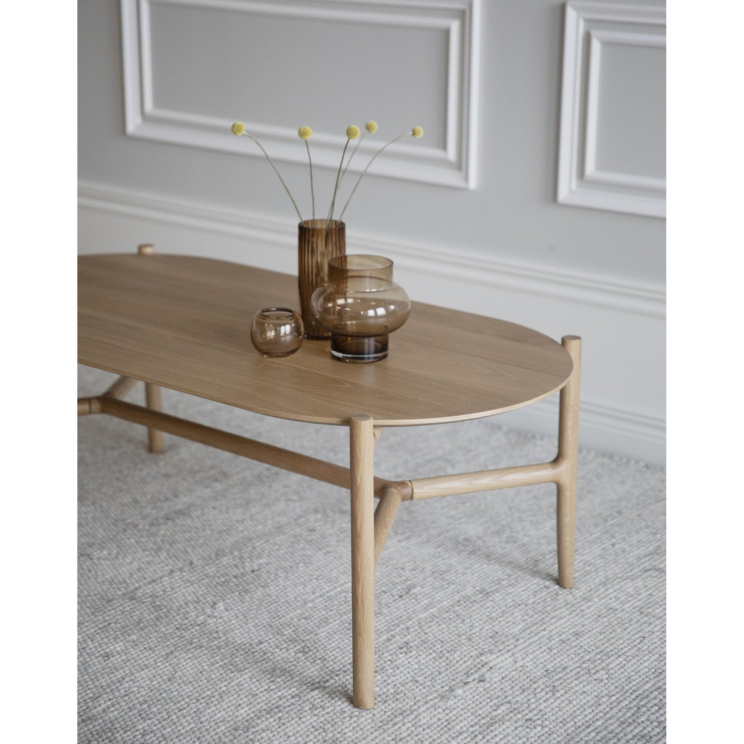 Oppdag Holton oval kaffe bord, et elegant og funksjonelt møbel som passer perfekt inn i ethvert hjem. Med en bordplate i lakkert eikefiner og en solid eikebase, kombinerer dette bordet stil og holdbarhet. Den lakkert overflaten gjør det enkelt å rengjøre, noe som gjør det ideelt for daglig bruk.