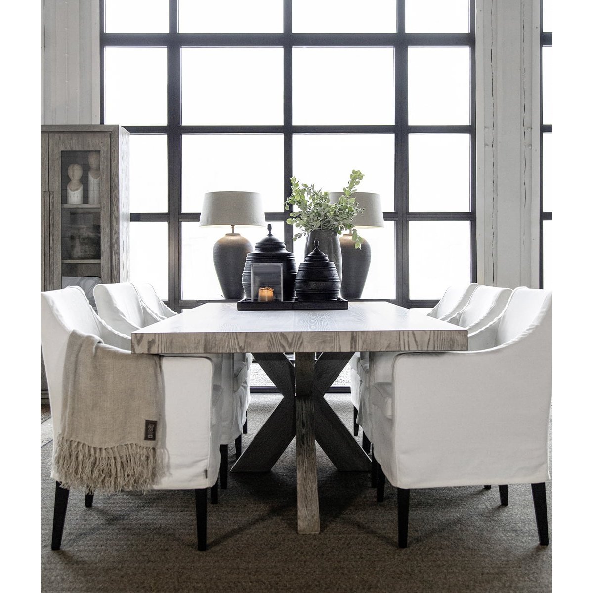 Hunter-serien gir et moderne og robust inntrykk med sitt minimalistiske design og klare trestruktur. Eikefinèren er malt og lakkert i flere trinn, noe som gir en hard og holdbar overflate, samtidig som den beholder sitt naturlige utseende. I vår populære Hunter-serie finner du både spisebord, nattbord, skuffer og annet møblement.