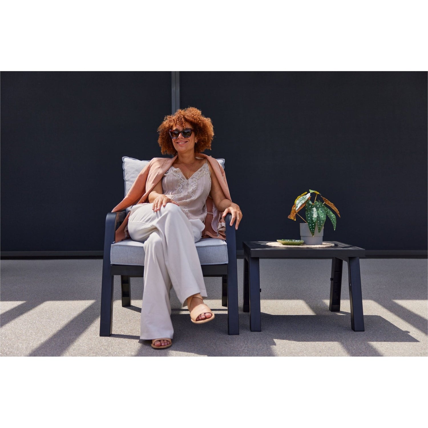 Sidebord i sort, aldringsbestandig plast. Hele Ibiza-serien er produsert i Europa, og har et moderne og solid design. Tåler godt varierte værfohold og er enkel å rengjøre. 5 års garanti mot material- og konstruksjonsfeil.
