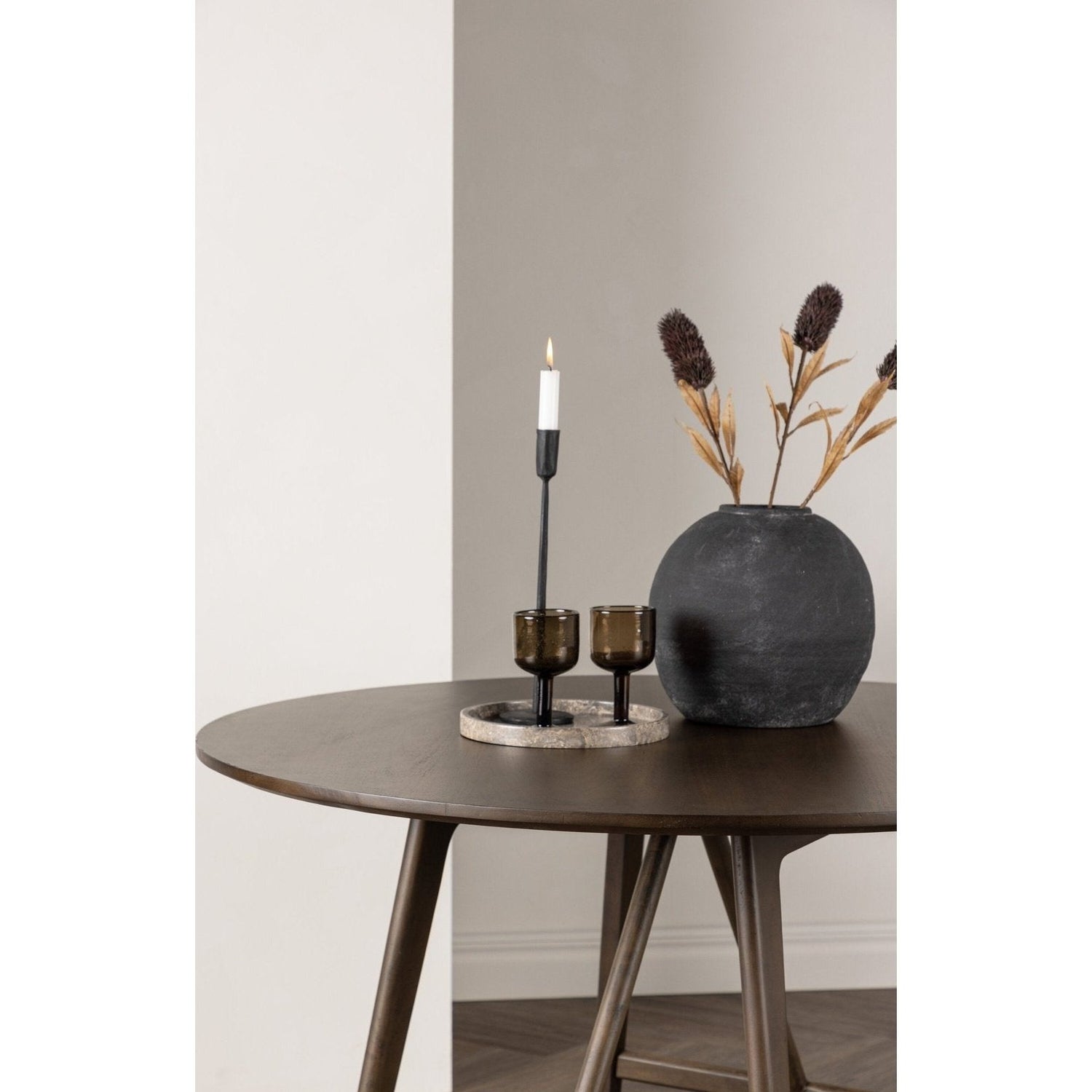 Et rundt spisebord er perfekt for å skape sosiale og innbydende øyeblikk under ethvert måltid - her havner ingen på kanten! Kaseidon har et moderne utseende som passer fint til det moderne hjemmet. Bordplaten har en matt finish og bena er lett utbuede med en stabiliserende ramme, konsekvent laget av MDF og gummitre. Match med et par komfortable spisestoler, og du vil ha en komplett spisegruppe for hjemmet ditt!